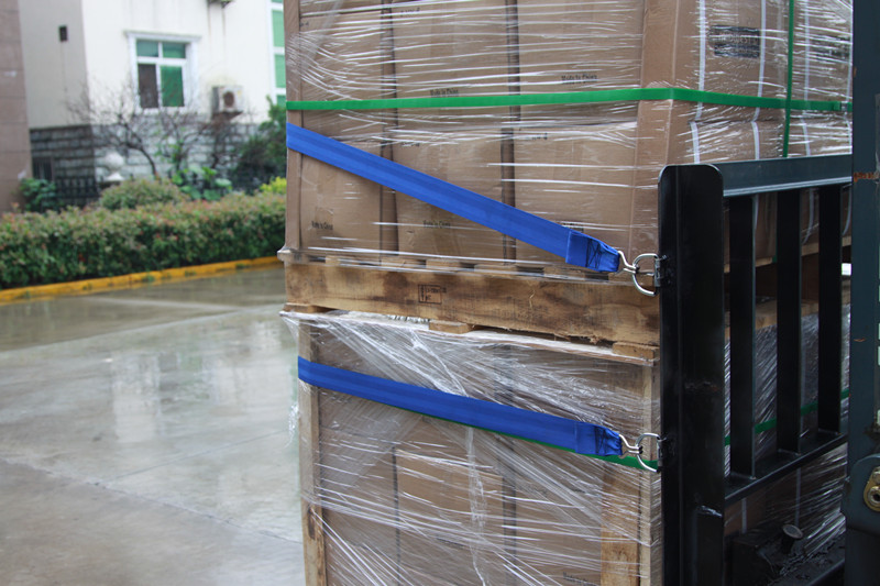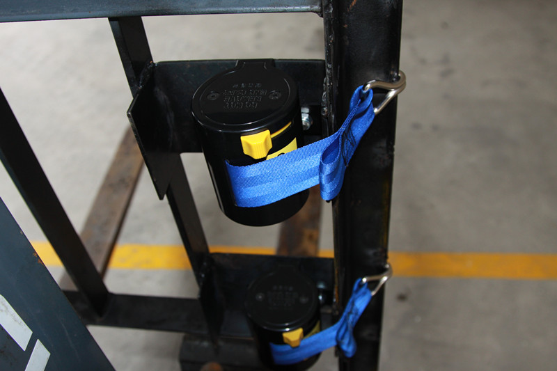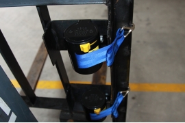 ● The binding strap is installed on the right side of the forklift guard rail frame (the right-hand side of the forklift driver).