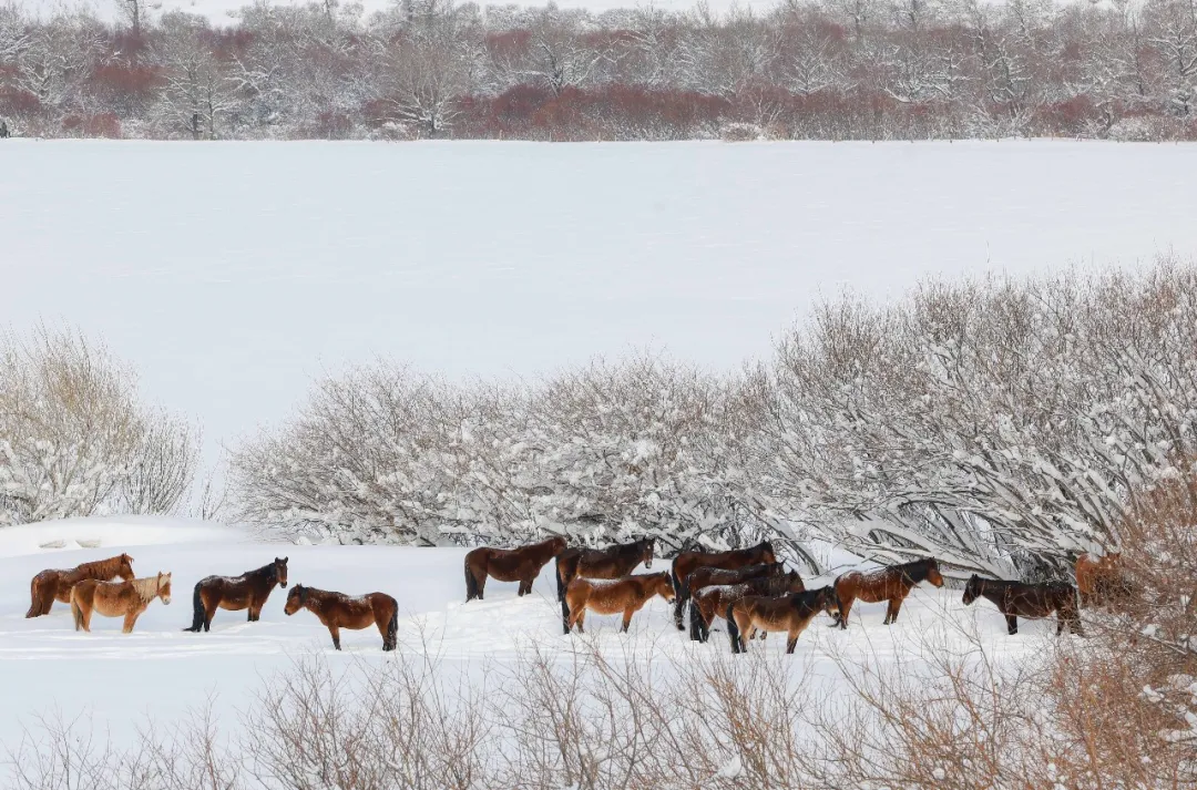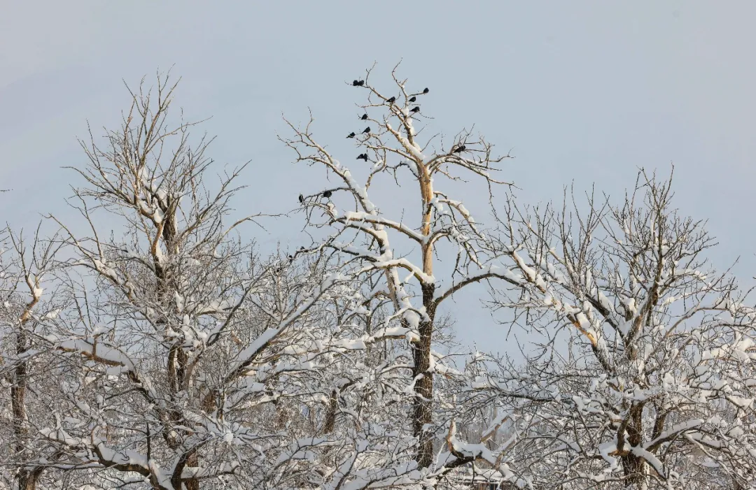 雪后的那拉提草原,茫茫天地被白雪盡數裹覆,無垠雪原如一幅靜謐水墨長卷。山間霧氣氤氳,與銀裝素裹相融,云杉、胡楊枝椏綴雪,挺拔蒼勁;雪地里牛馬悠然踱步,“冬窩子”靜臥其間,褪去喧囂,盡展冬日草原的遼闊與祥和。