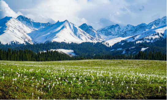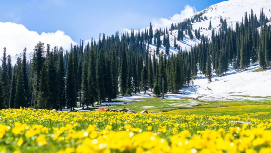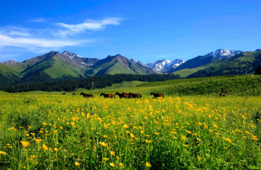在廣袤的那拉提大草原上你就任憑自己跟著云朵走走過平坦的河谷,跑過低緩的草坡,跨過涓涓的溪流讓時光隨意灑落在開滿鮮花的天山腳下