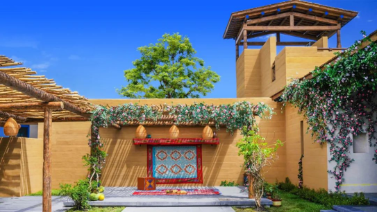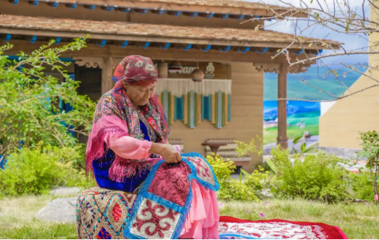 這是一個遠離塵囂的村寨土色的磚墻上掩著“伊犁藍”的門窗宛若勾勒在宣紙上的寫意畫作河卵石與木條圍成的院落,裝下了你旅途所有的風景和歡喜好似走過哈茵賽的街巷便是看過了游牧文化的千年卷軸不自覺間步伐會慢下來,時間會慢下來,就連你的呼吸也會慢下來