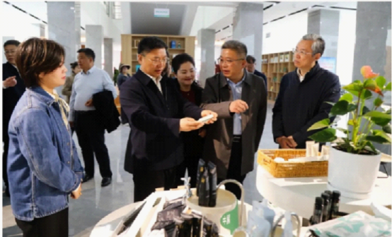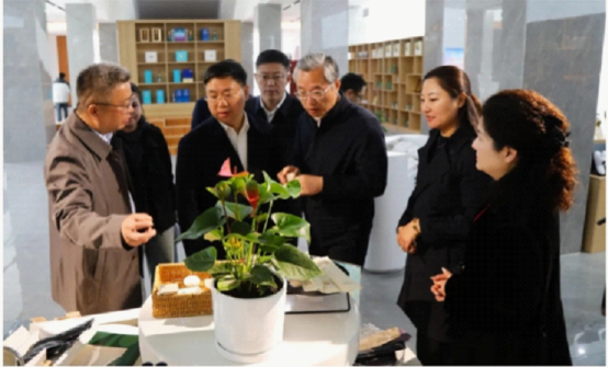 隨后,唐朝文與高磊共同為展示中心揭牌。大家共同觀看展品、聆聽講解、駐足交流、拍照記錄,對展廳內容表現出濃厚興趣。