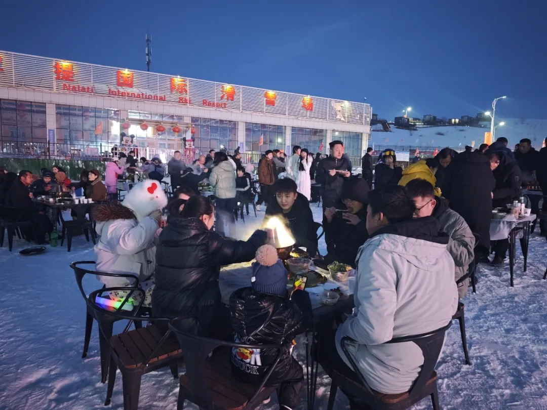 白天賽事燃情逐雪,夜晚狂歡持續(xù)升溫。當(dāng)天19點(diǎn),冰雪狂歡夜正式拉開帷幕,現(xiàn)場(chǎng)燈光璀璨、氣氛熱烈。活動(dòng)精心還打造了特色雪地火鍋宴,熱氣騰騰的美食與冰天雪地形成鮮明對(duì)比,讓游客在暢享冰雪樂(lè)趣的同時(shí),感受舌尖上的溫暖與美味。隨后,狂歡環(huán)節(jié)亮點(diǎn)紛呈,專業(yè)DJ現(xiàn)場(chǎng)打碟,動(dòng)感節(jié)奏點(diǎn)燃全場(chǎng)氛圍,專業(yè)歌舞團(tuán)帶來(lái)精彩文藝表演,新疆特色與現(xiàn)代活力相互交融。熱鬧的篝火互動(dòng)環(huán)節(jié)中,游客們手拉手圍著篝火歡歌、載歌載舞,沉浸式感受雪夜狂歡的獨(dú)特魅力,現(xiàn)場(chǎng)還穿插多輪幸運(yùn)抽獎(jiǎng),驚喜不斷、歡樂(lè)不停。