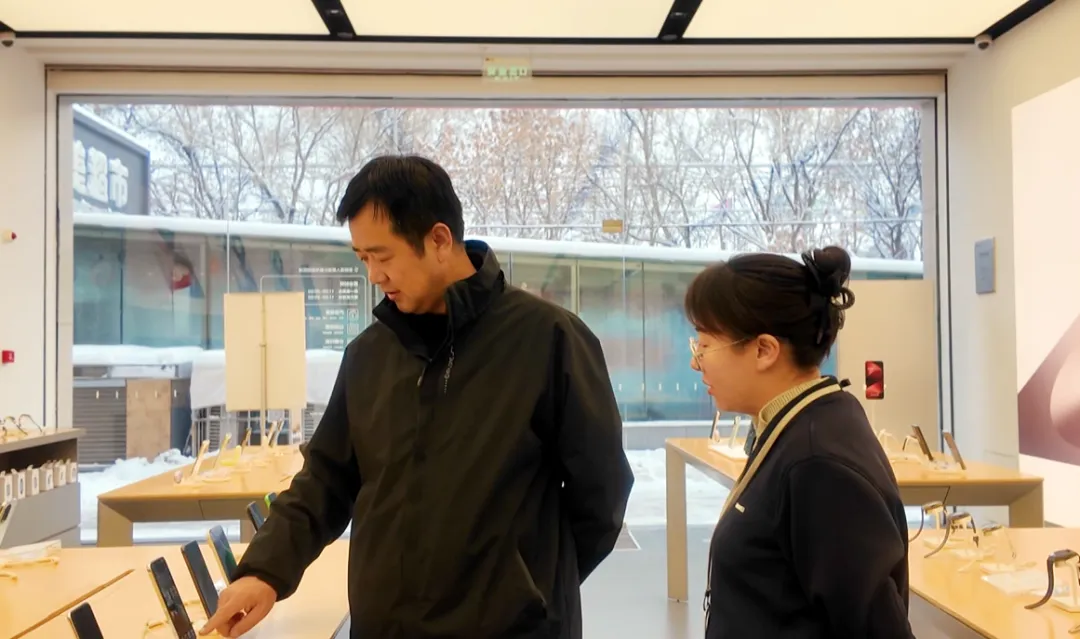 門店內,“國補直減”“節能補貼”標識醒目,補貼產品明碼標價,清晰標注補貼金額與最終成交價。天貓優品店內,一級能效空調等產品咨詢量激增;華為授權手機店中,256GB內存主流機型銷量領先,不少消費者為春節換新專程而來。天貓優品店還推出“送新收舊”一站式服務,農村地區消費者下單后,周邊區域當日送達,偏遠地區三日內送達,同步完成舊機回收。
