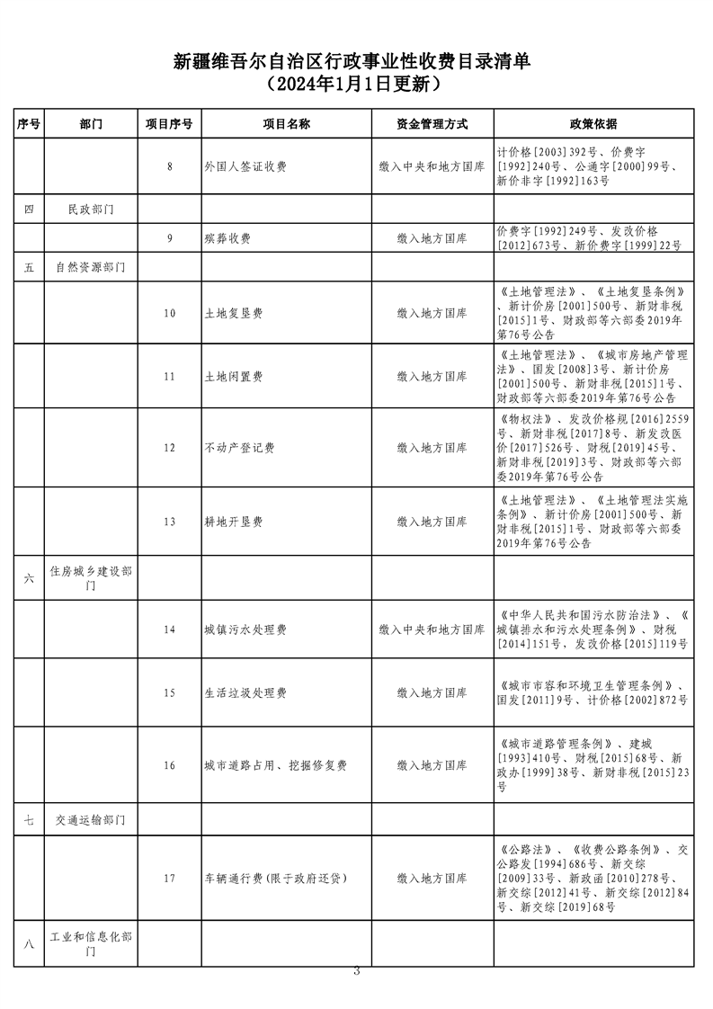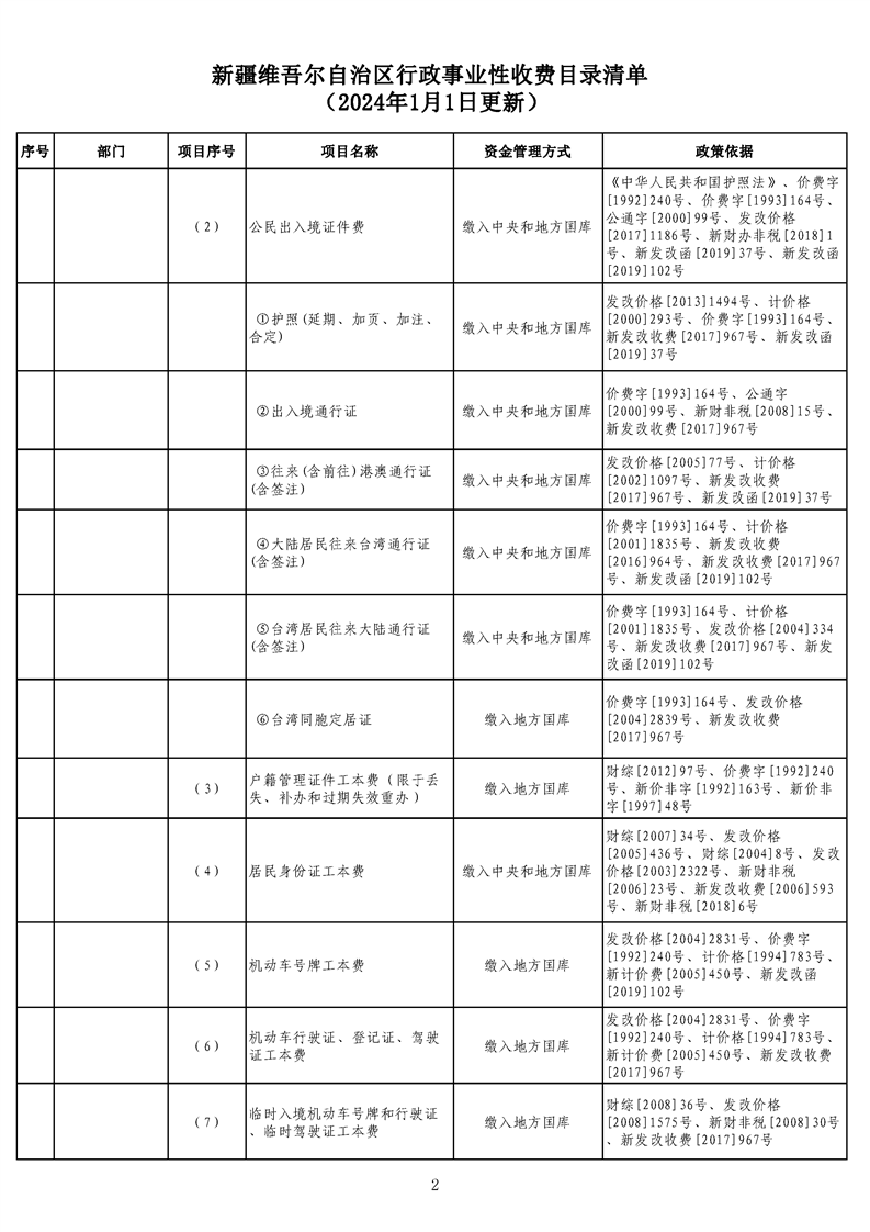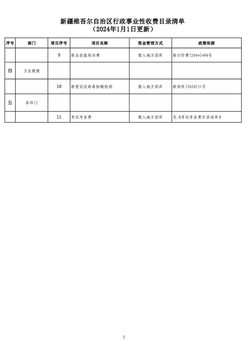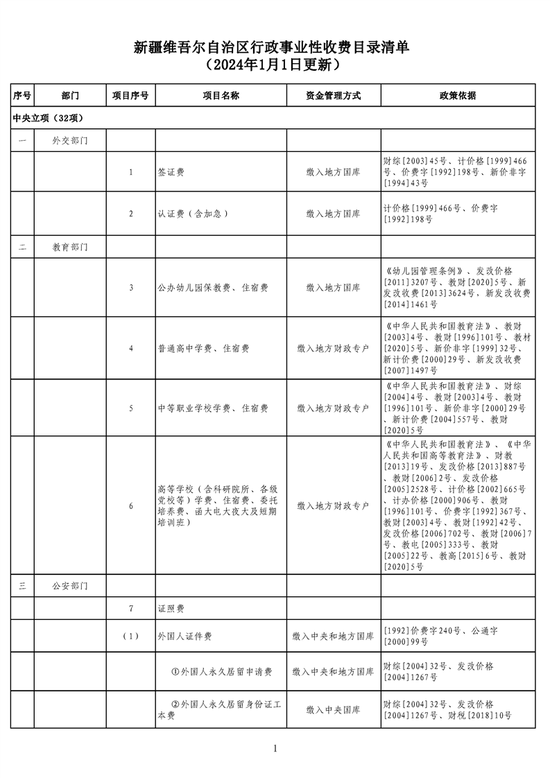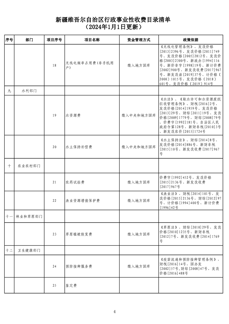 新疆維吾爾自治區(qū)行政事業(yè)性收費(fèi)目錄清單(2024年1月1日更新)