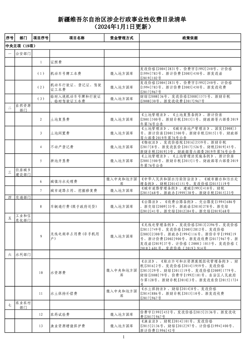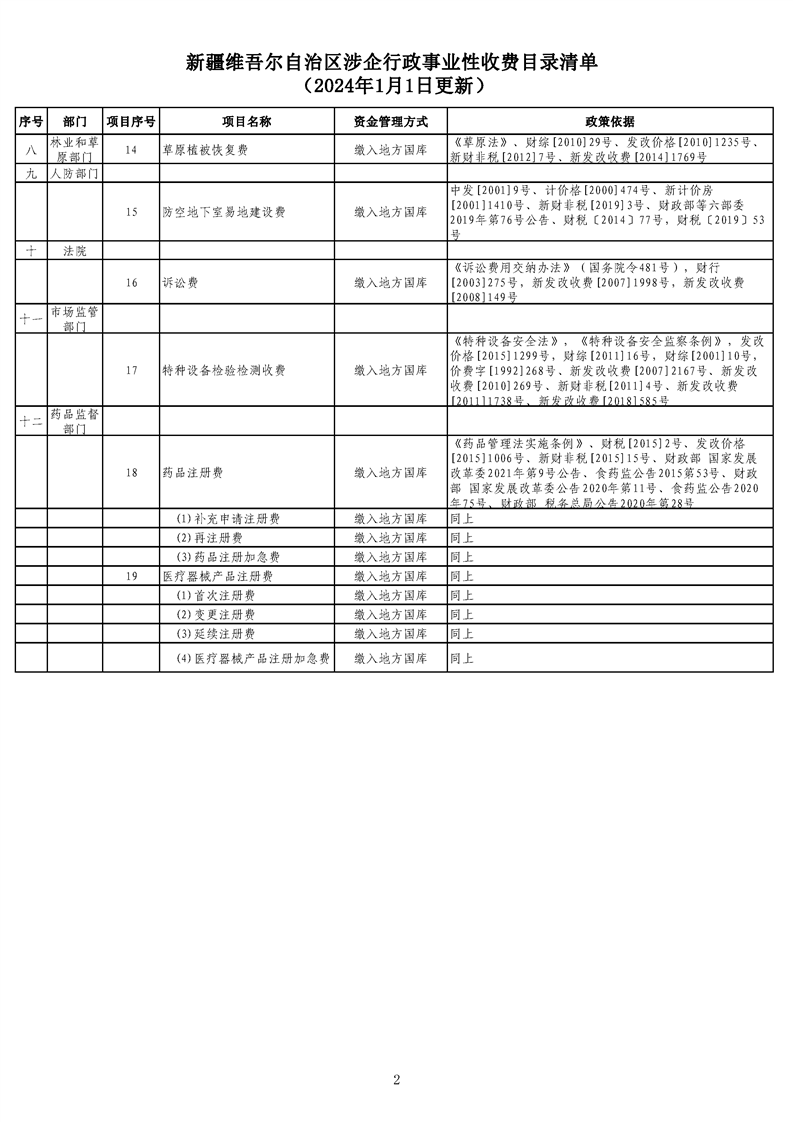 新疆維吾爾自治區涉企行政事業性收費目錄清單(2024年1月1日更新)