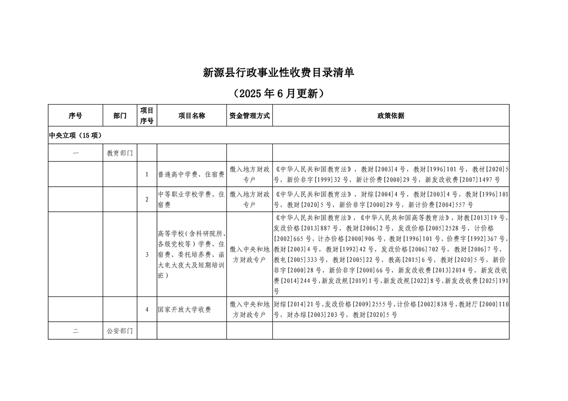 新源縣行政事業(yè)性收費(fèi)目錄清單(2025年6月更新)
