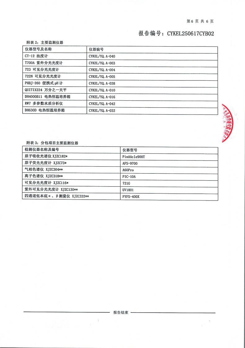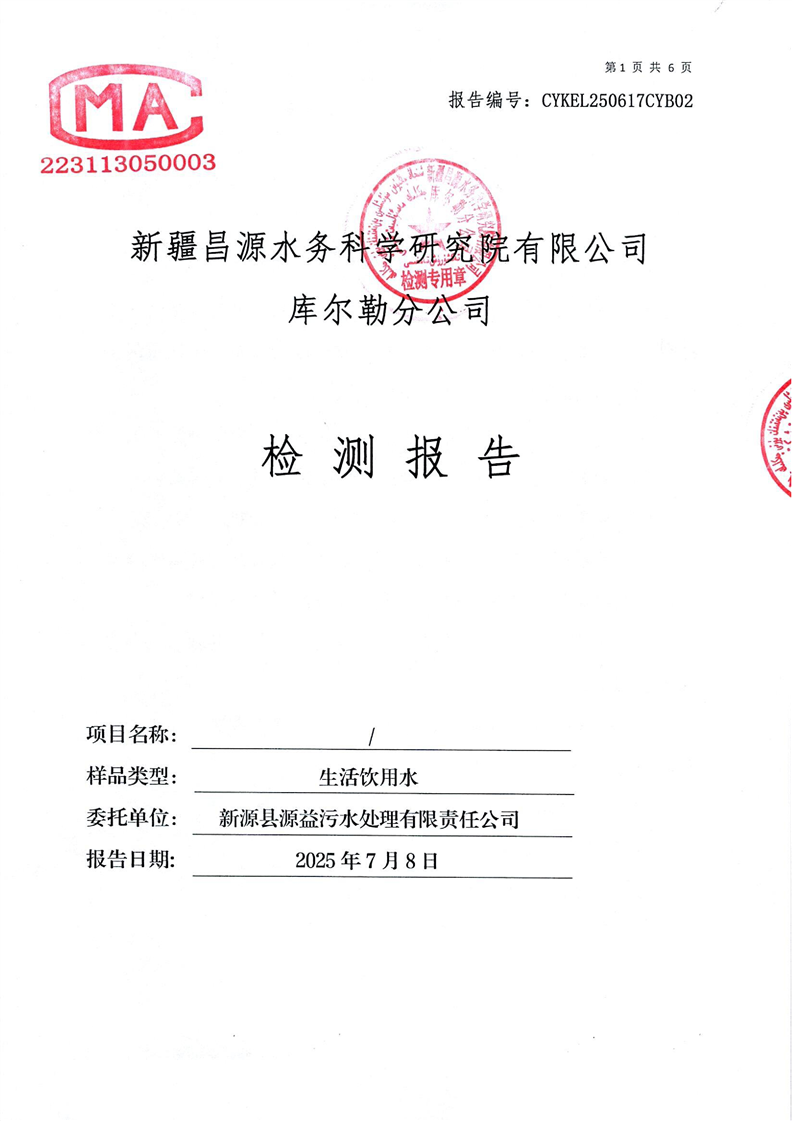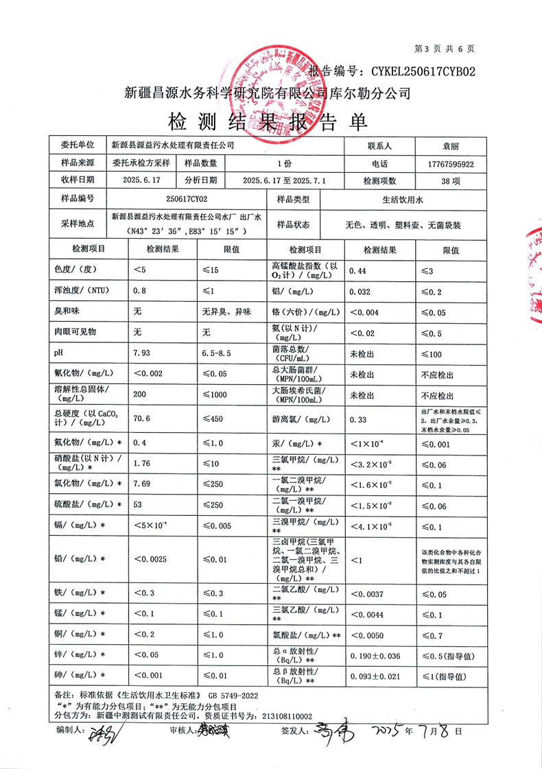 2025年6月份出廠水檢測(cè)報(bào)告單