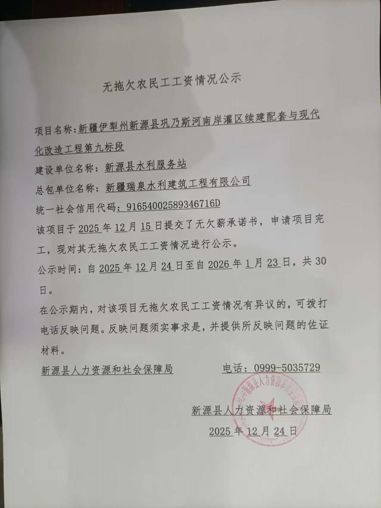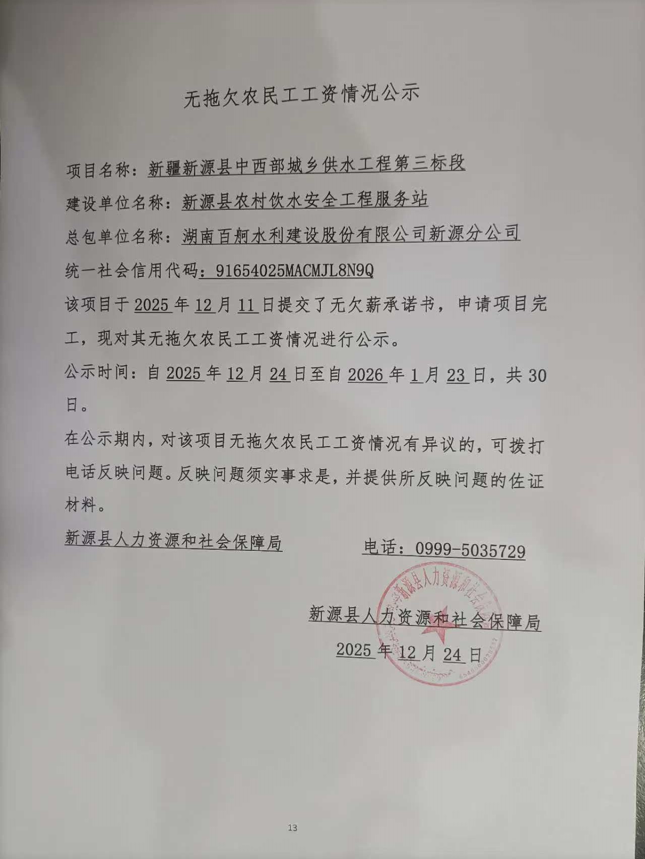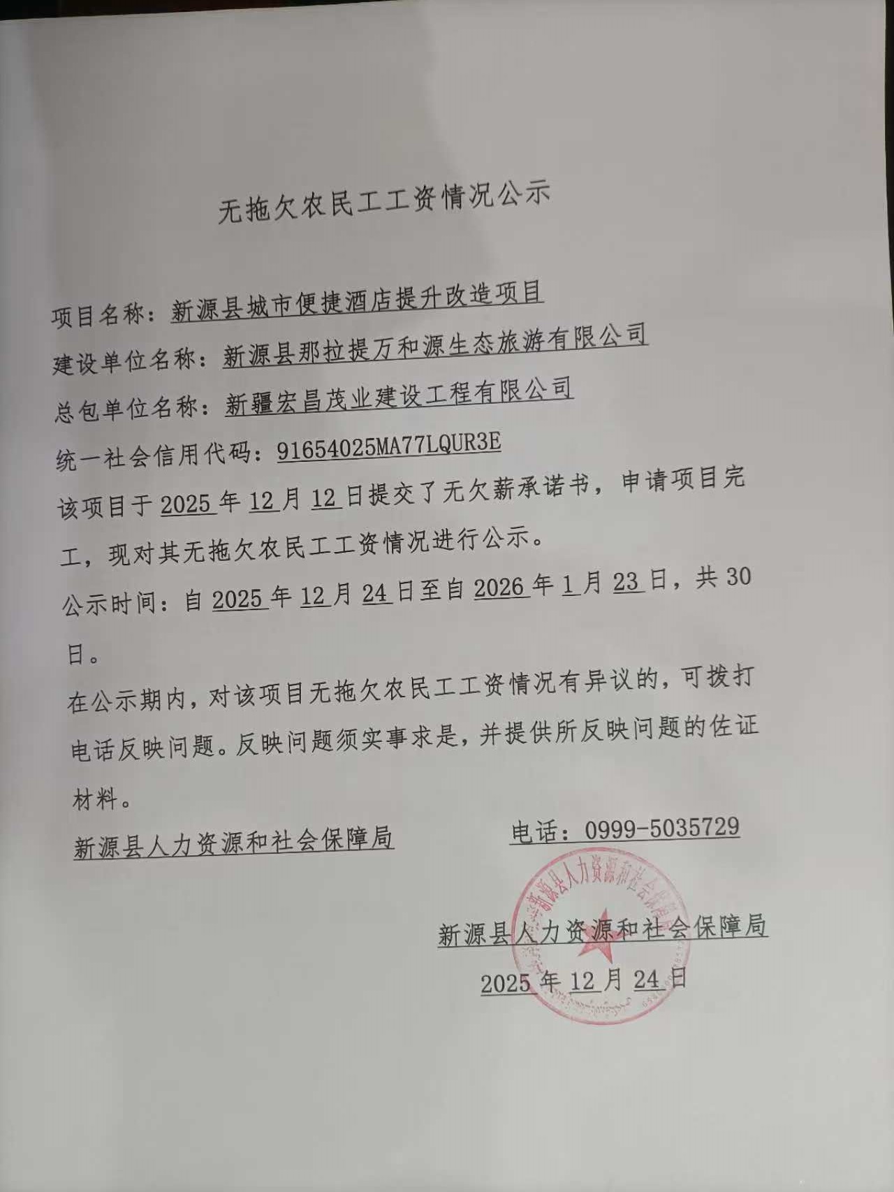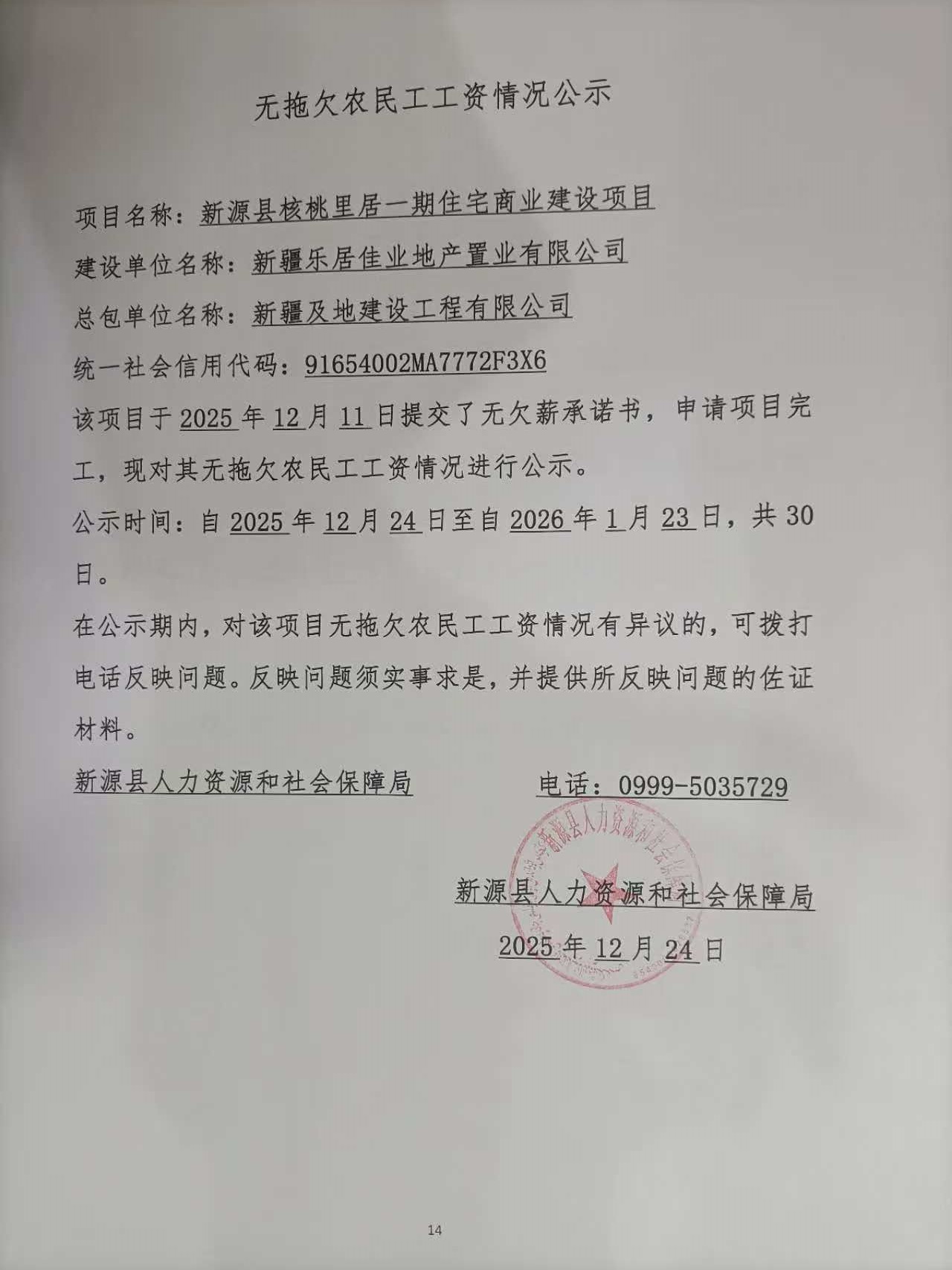 無拖欠農民工工資情況公示