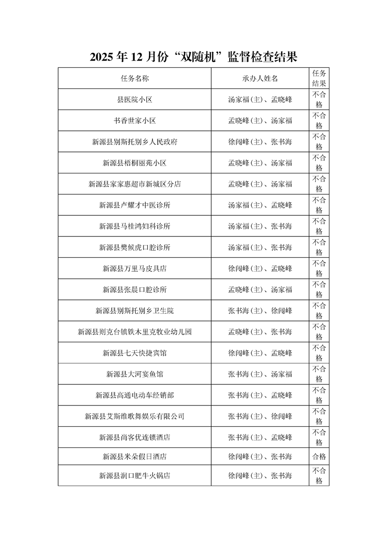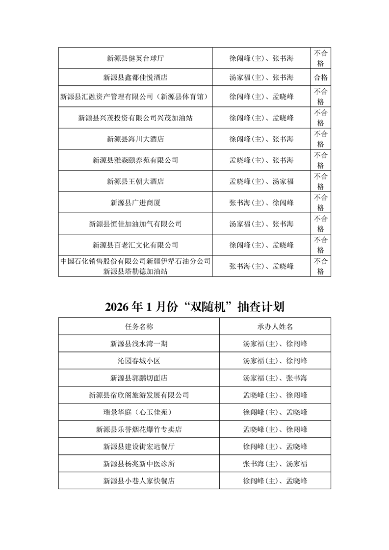 新源縣消防救援大隊(duì)2025年12月份“雙隨機(jī)”檢查結(jié)果及1月份“雙隨機(jī)”抽查計(jì)劃
