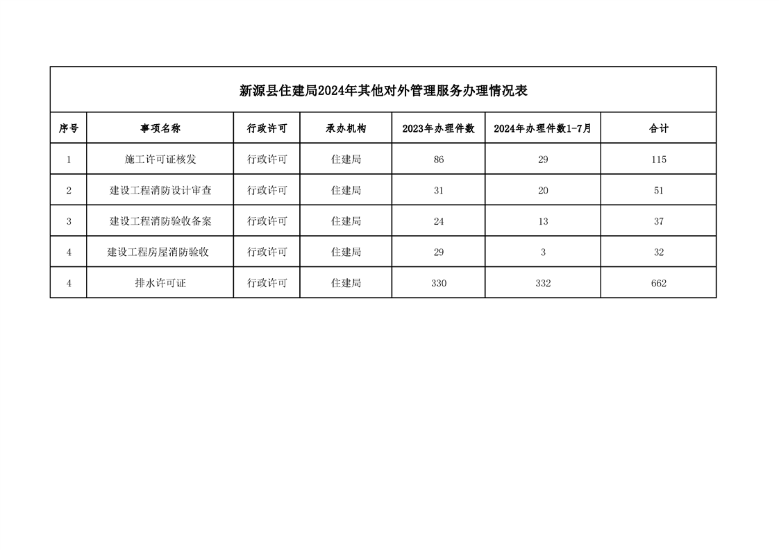 新源縣住建局2024年其他對(duì)外管理服務(wù)辦理情況表