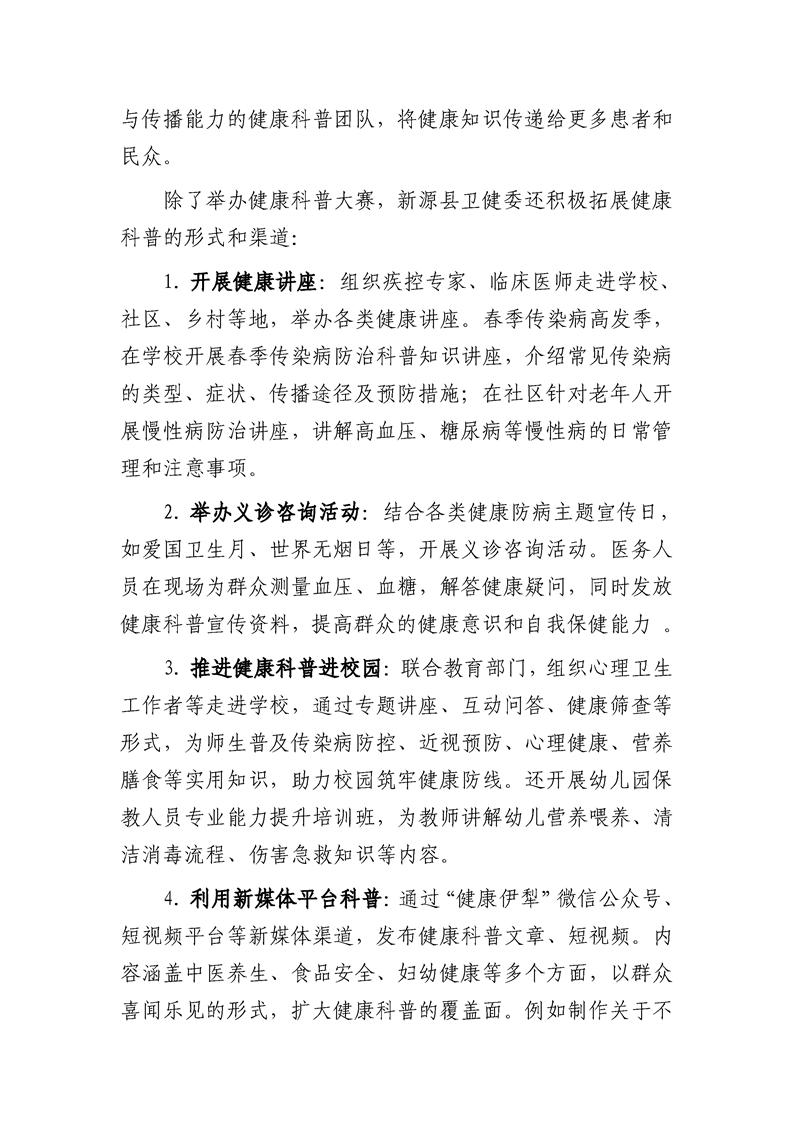 新源縣健康科普工作開展情況
