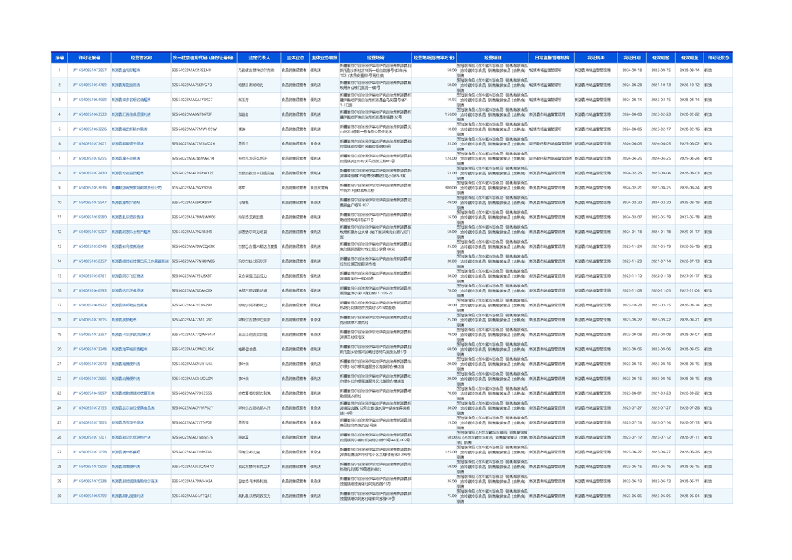 食品經營企業基本情況自定義查詢
