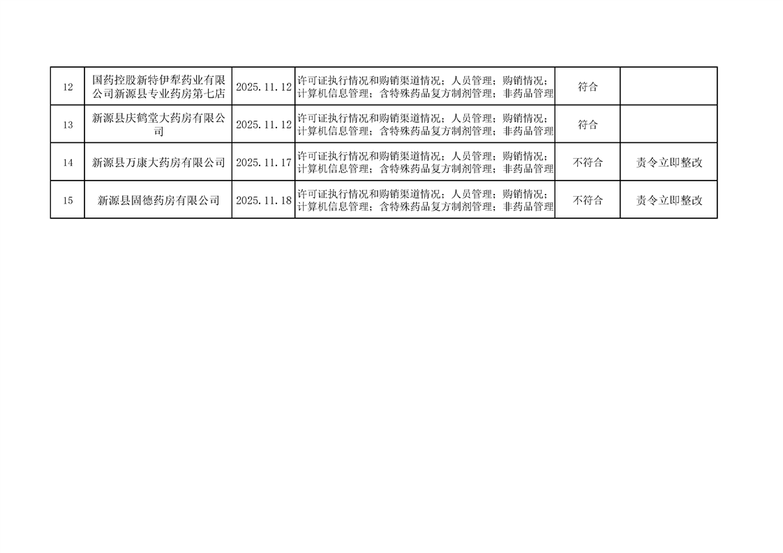 新源縣藥品經(jīng)營(yíng)企業(yè)檢查清單(第四季度)1