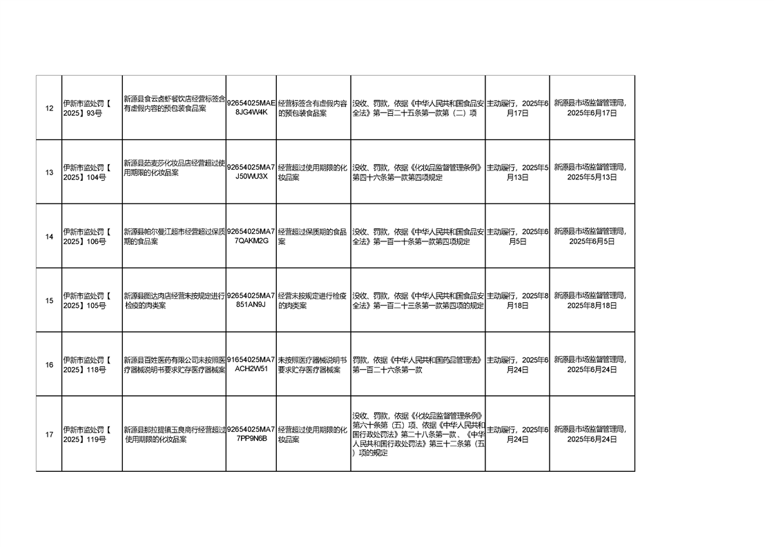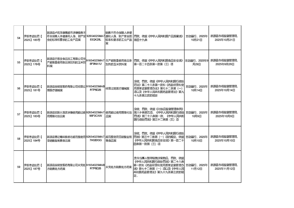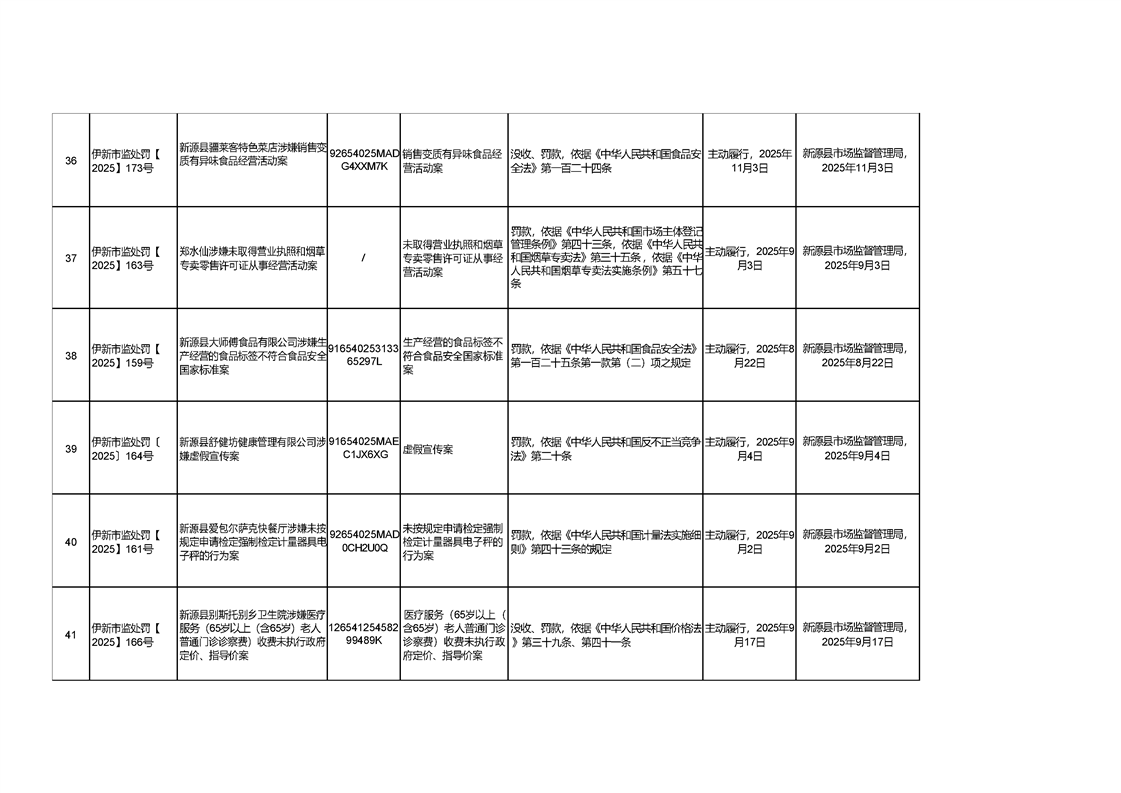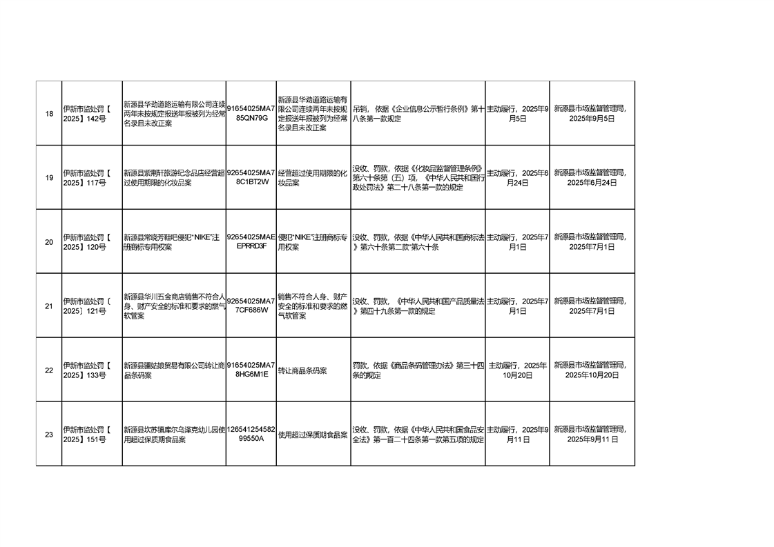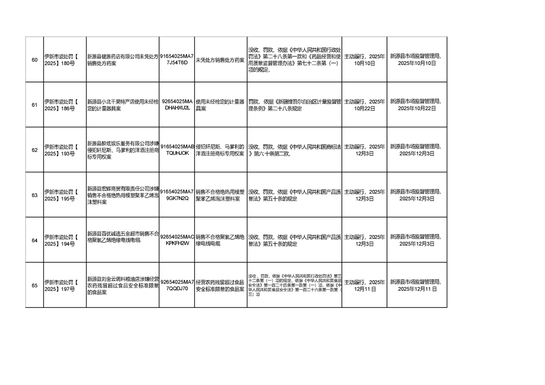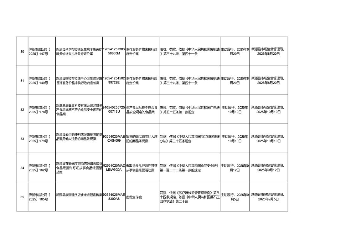 新源縣市場監督管理局行政處罰信息統計表(2025年第三期)