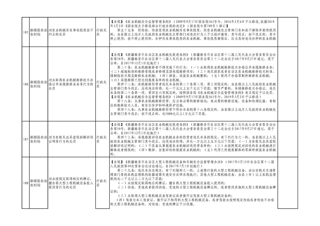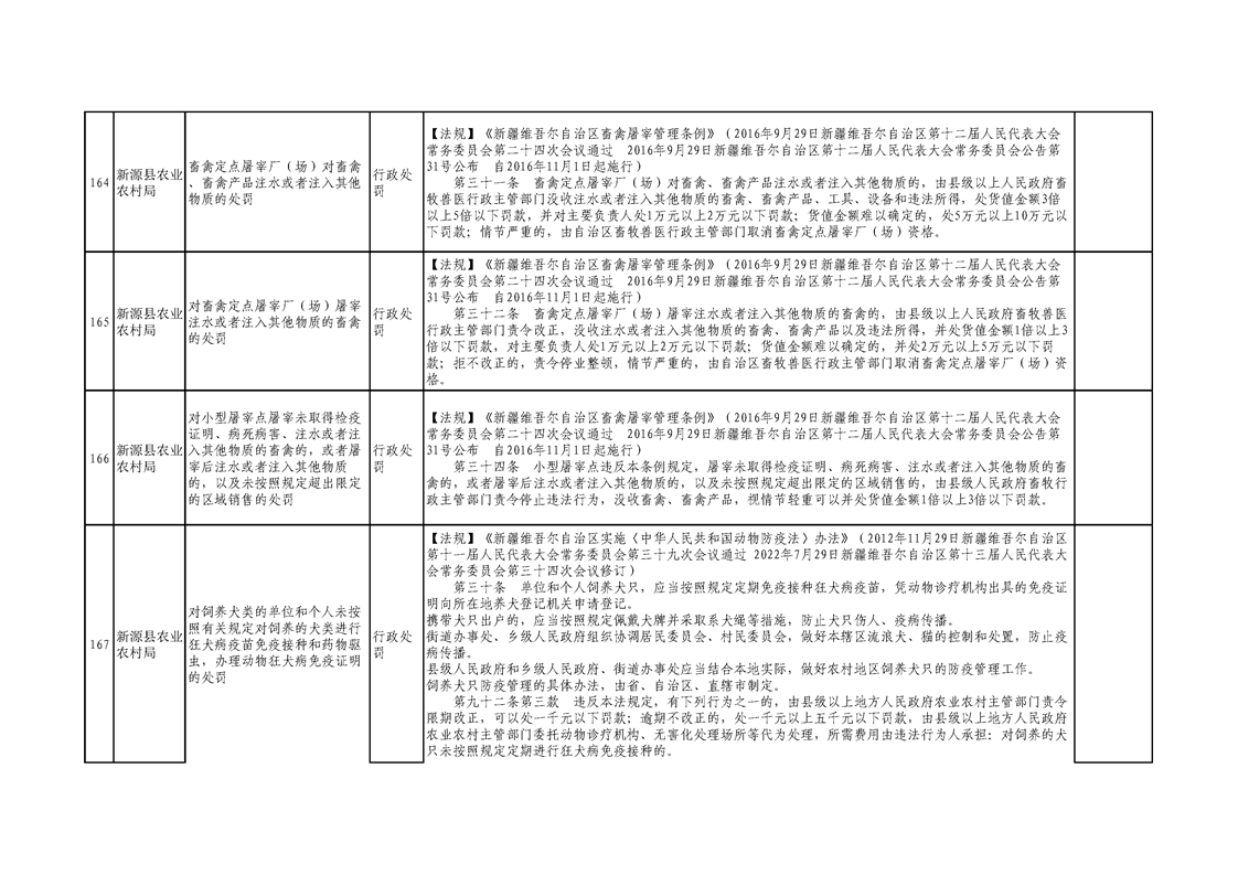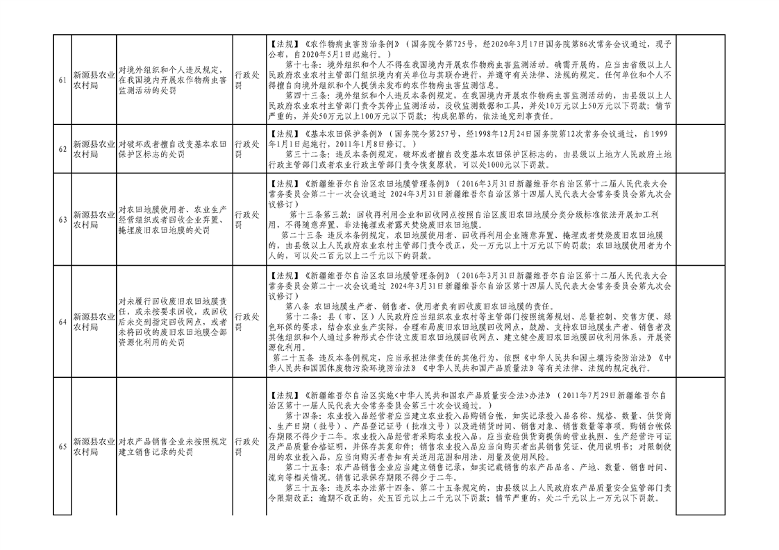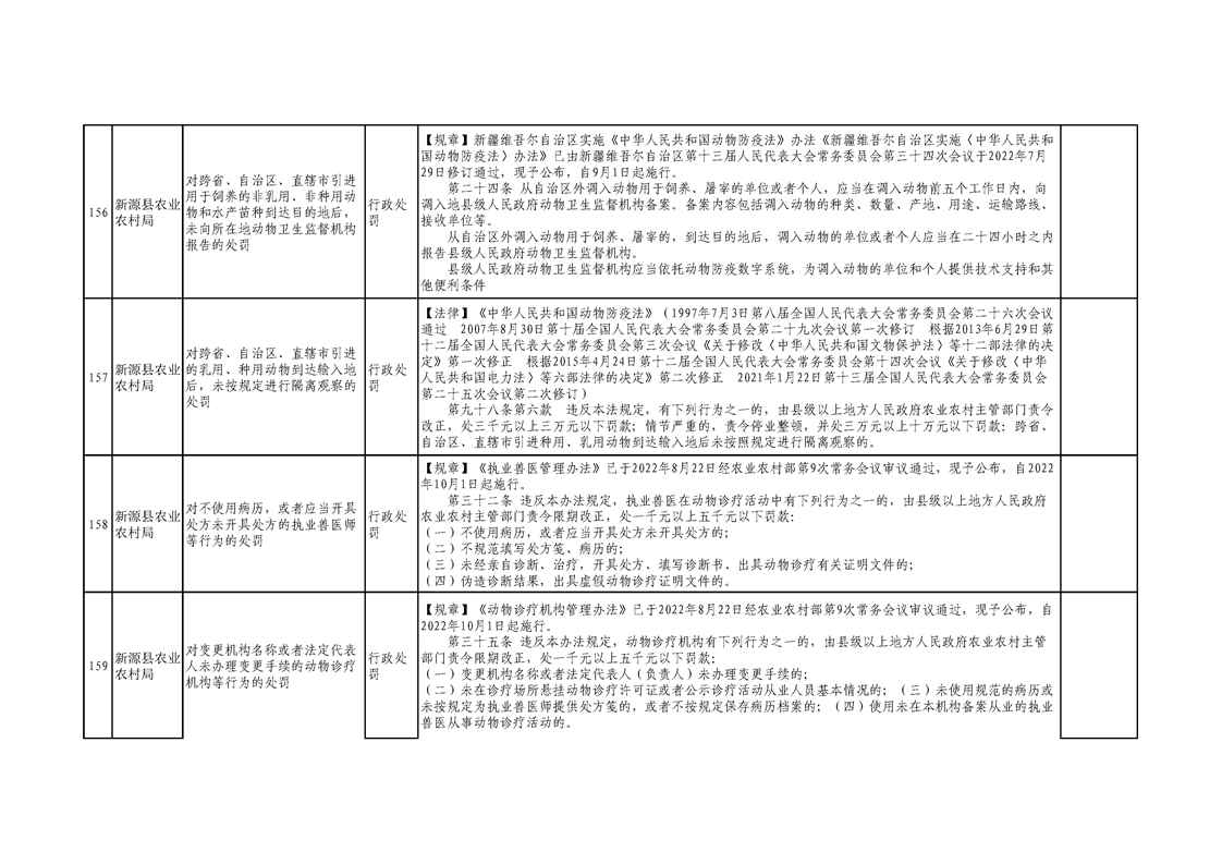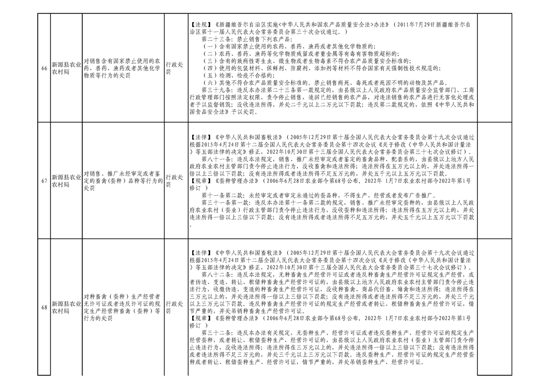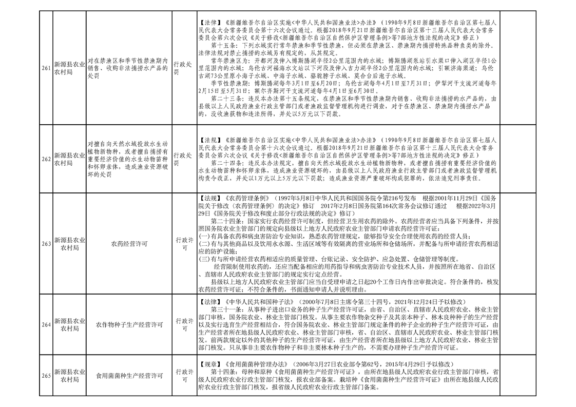 新源縣農業農村局行政執法事項清單