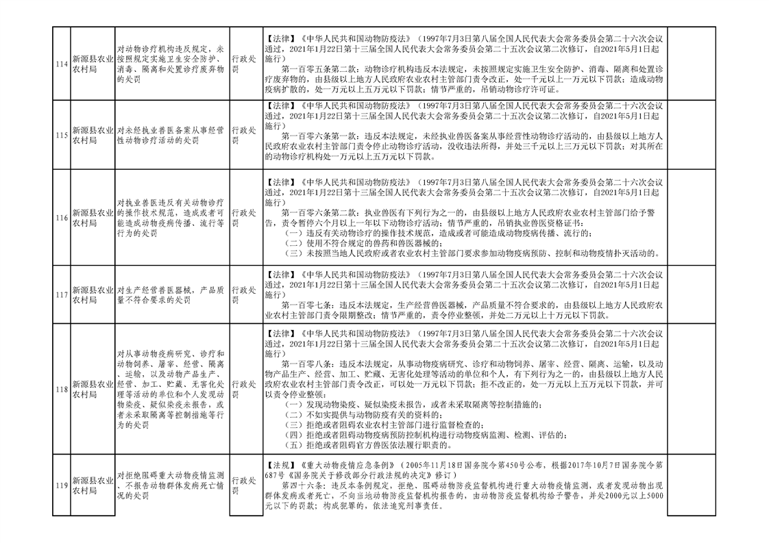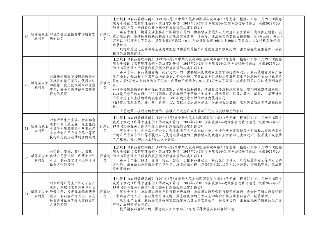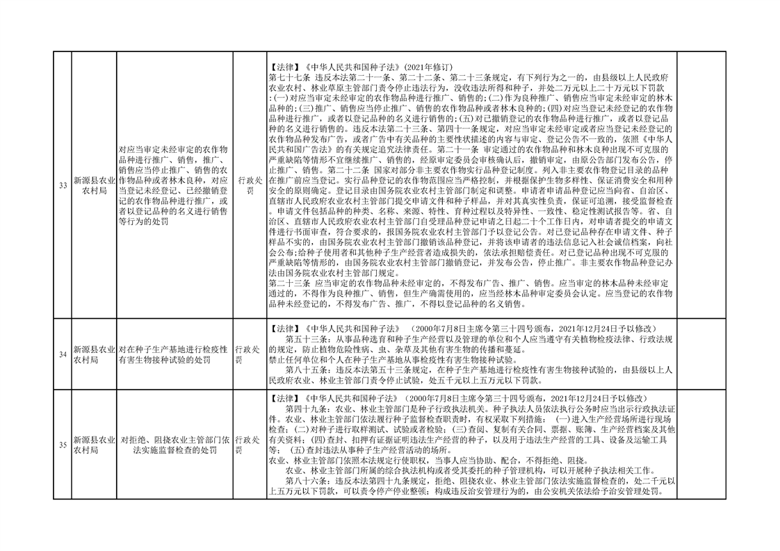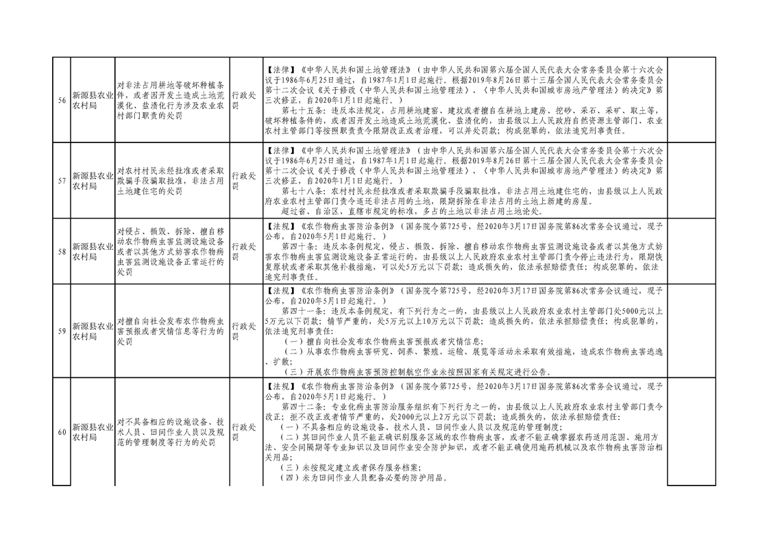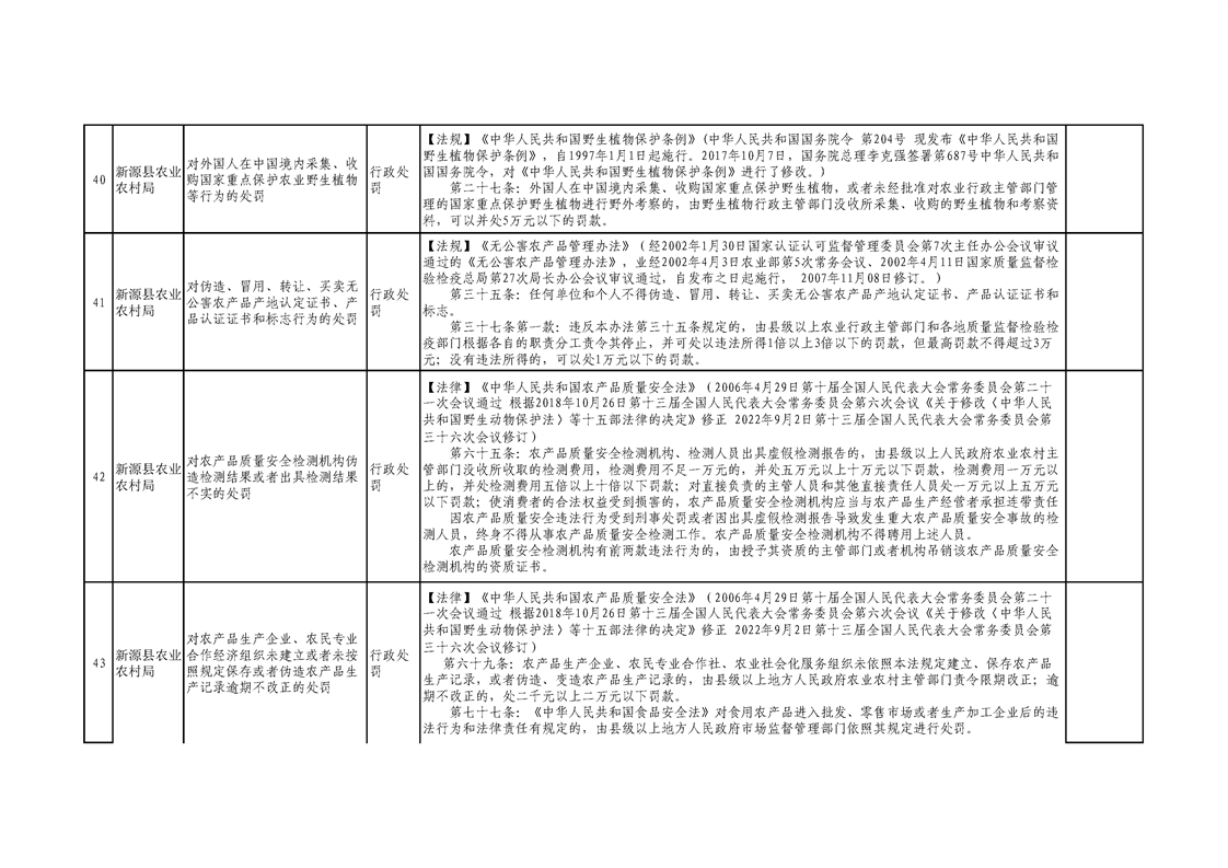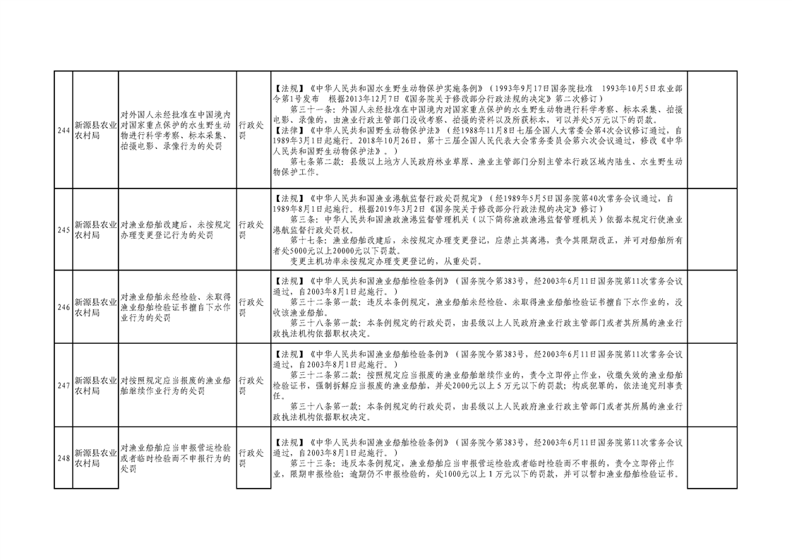新源縣農業農村局行政執法事項清單