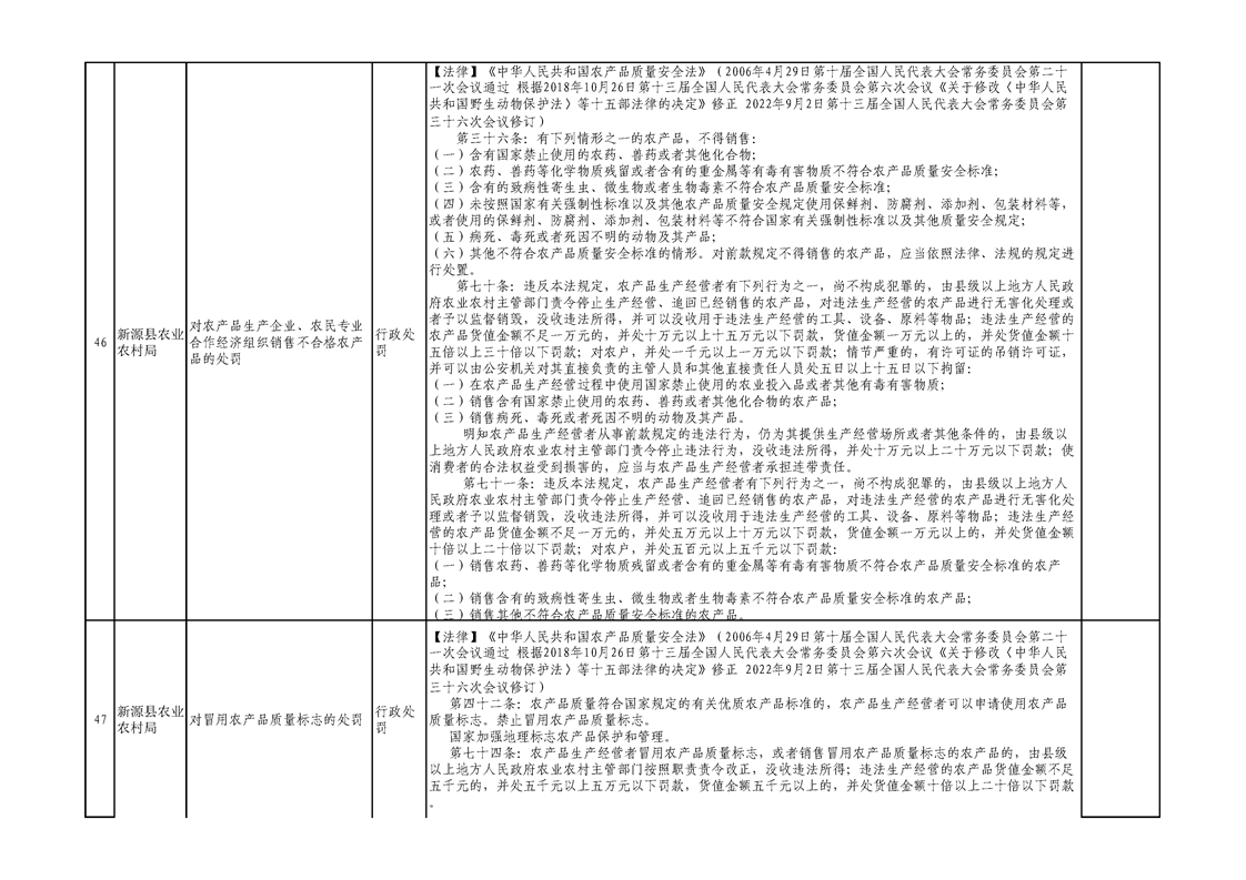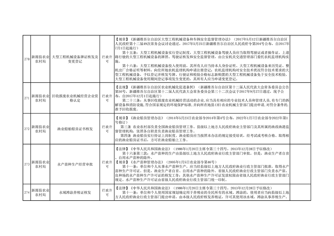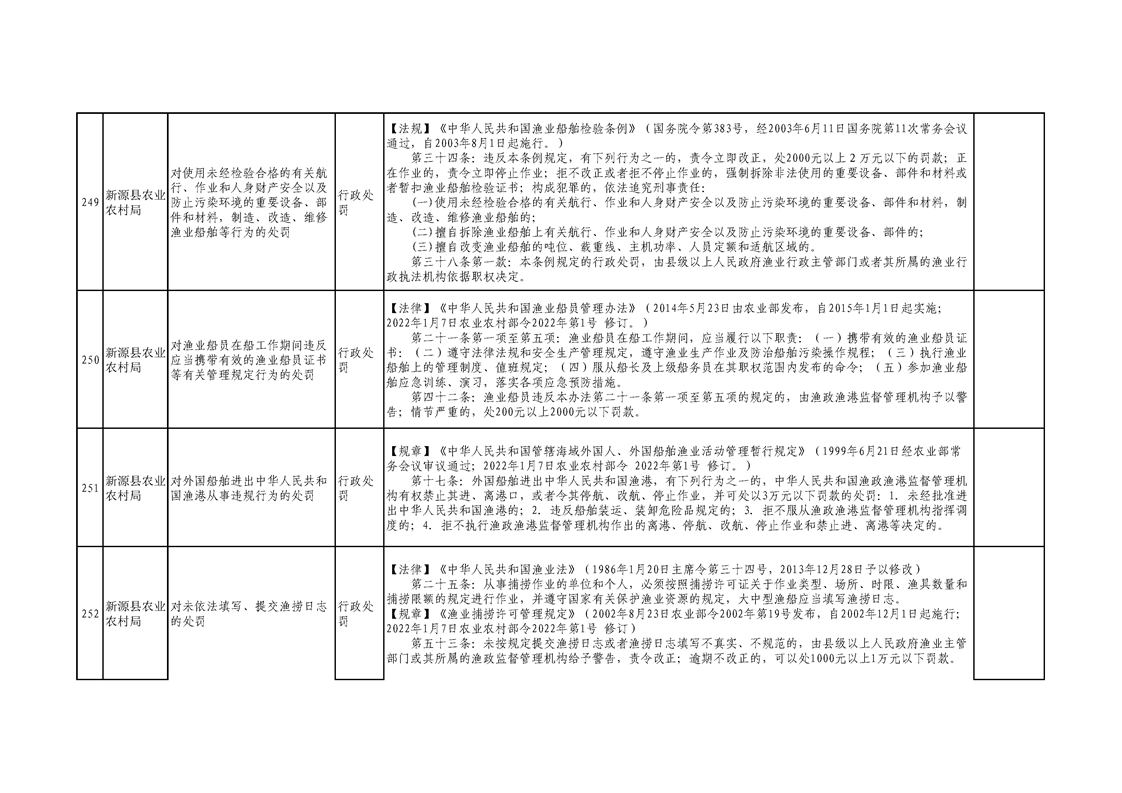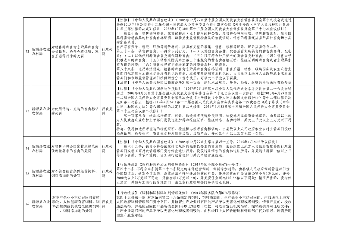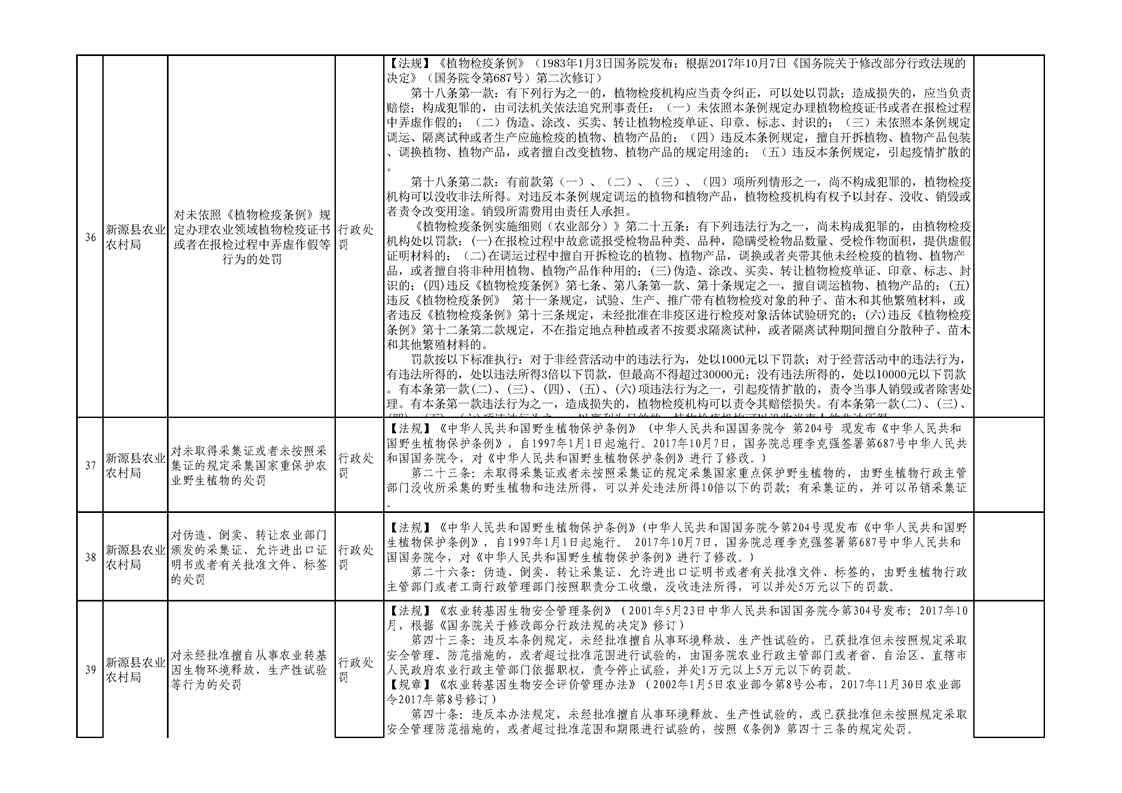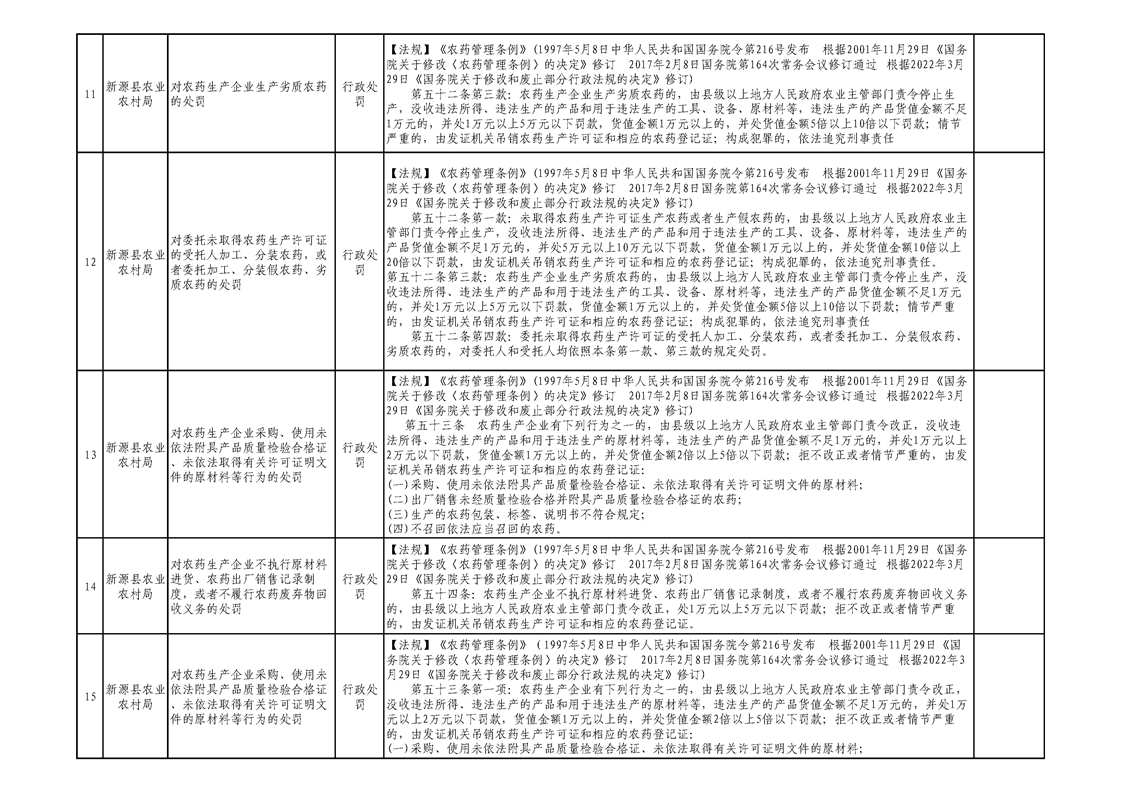 新源縣農業農村局行政執法事項清單