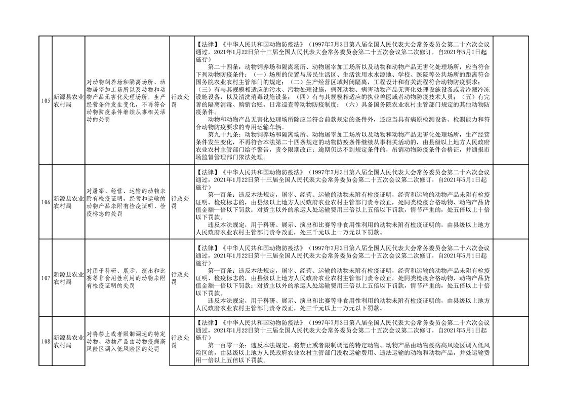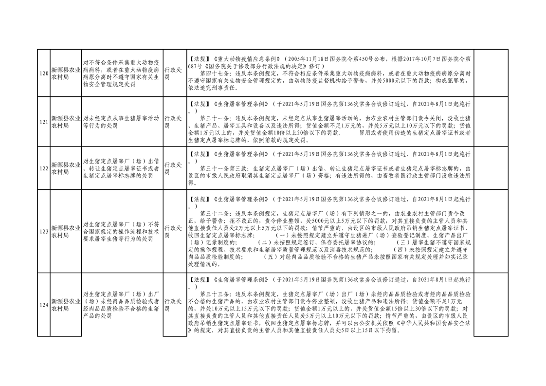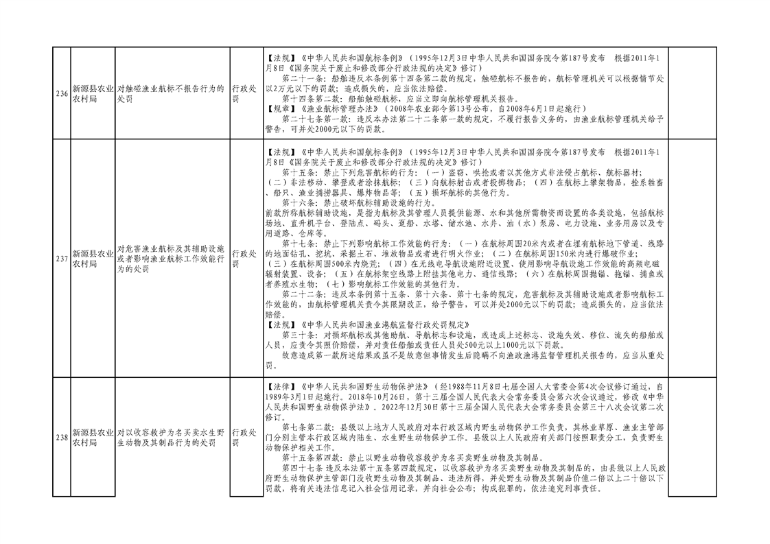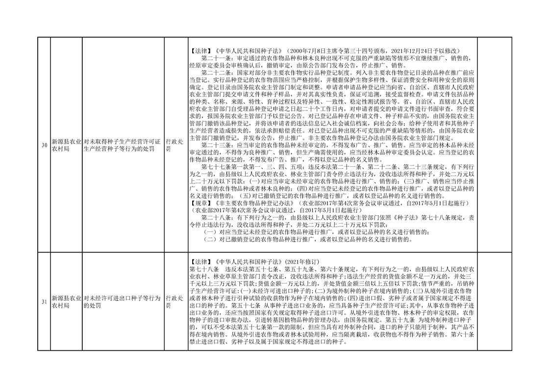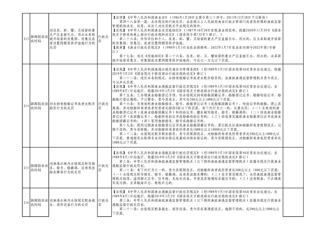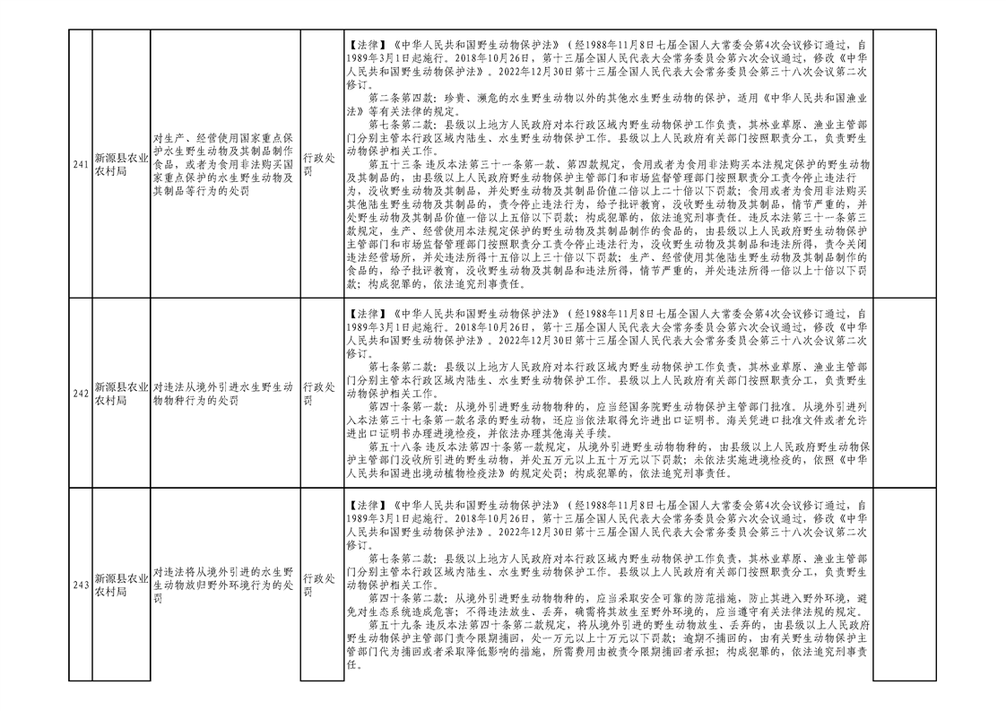 新源縣農業農村局行政執法事項清單