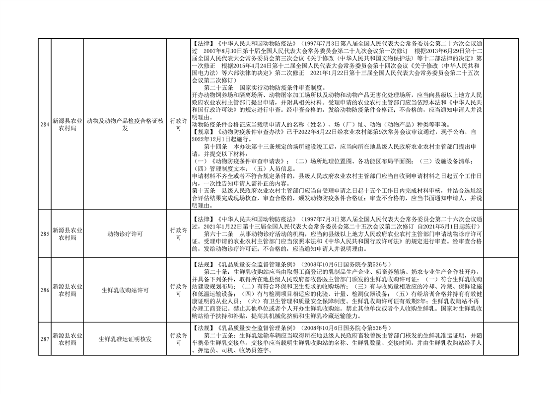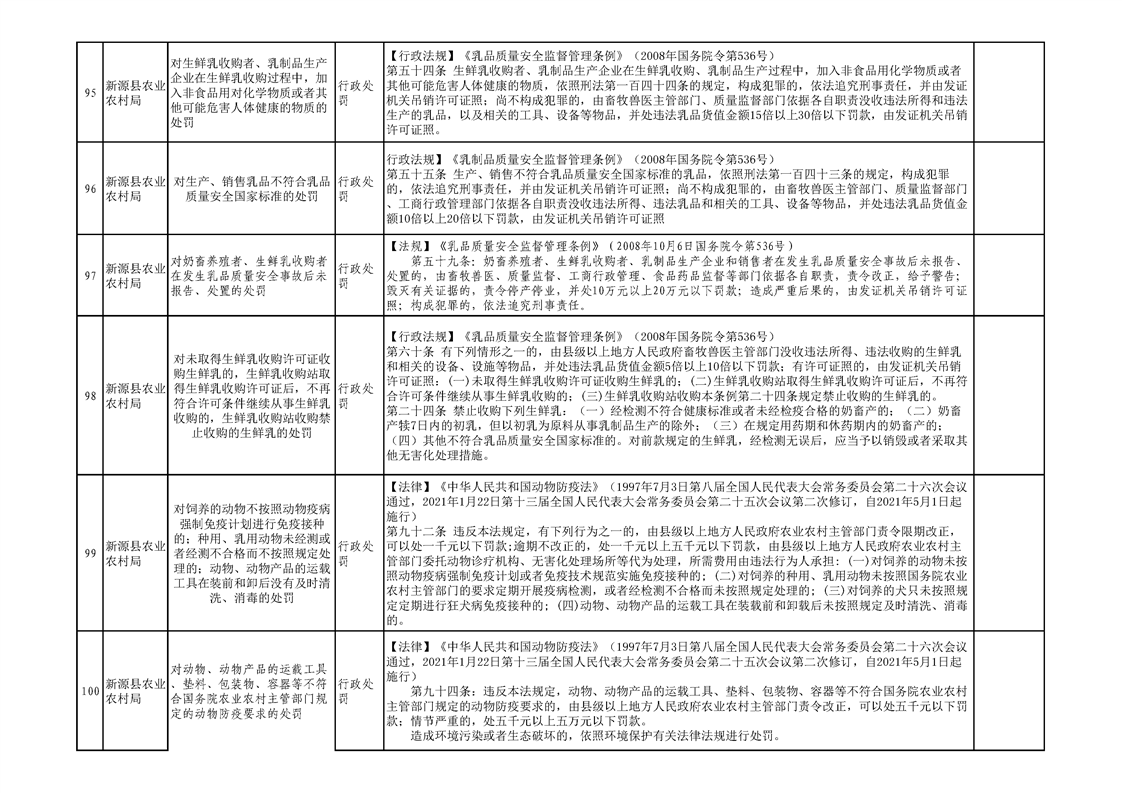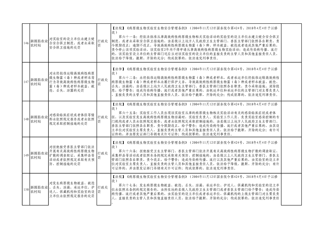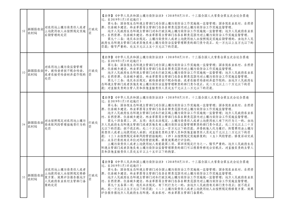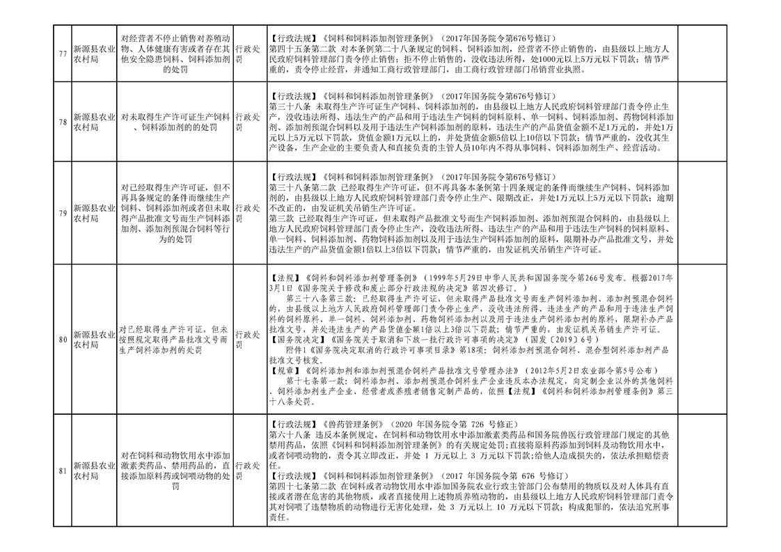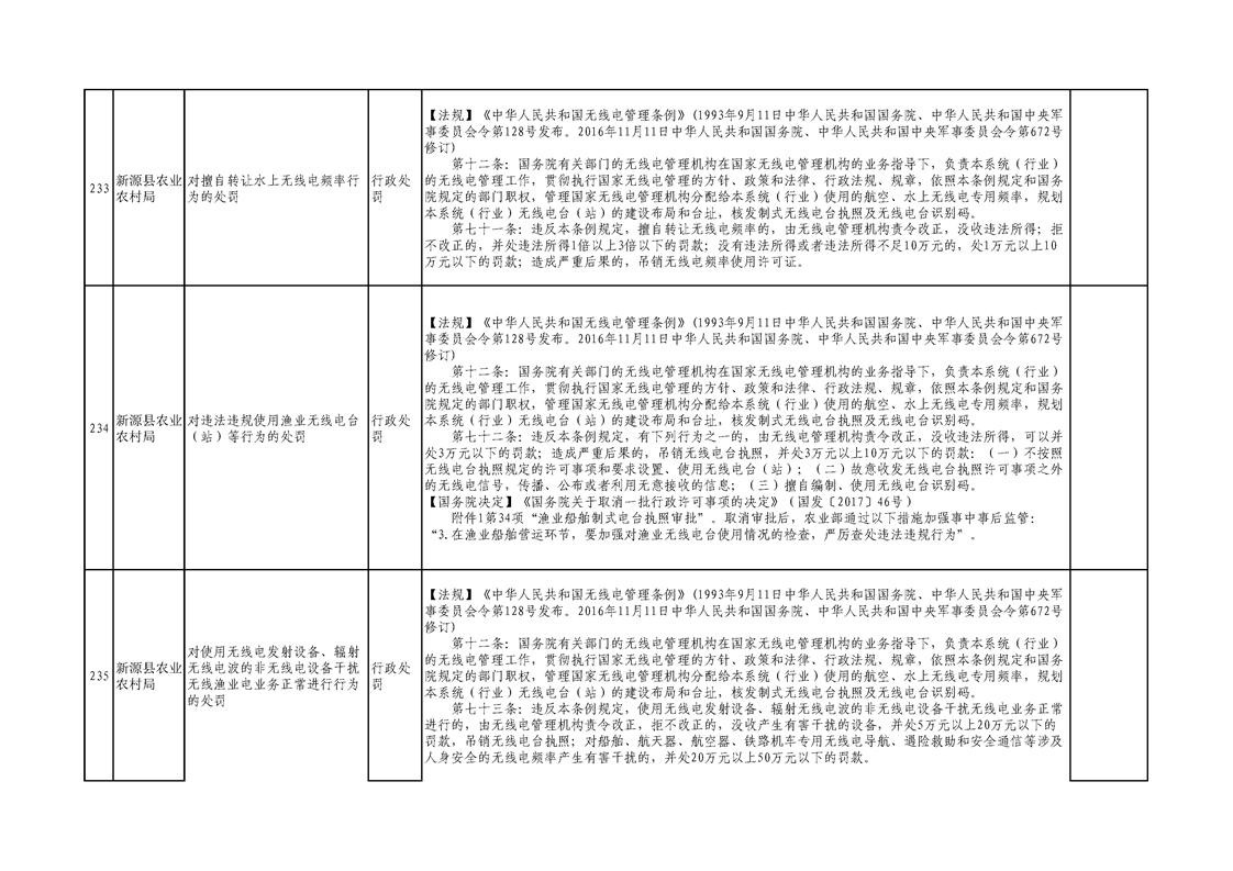 新源縣農業農村局行政執法事項清單