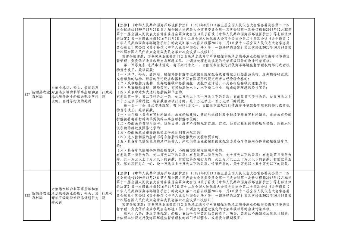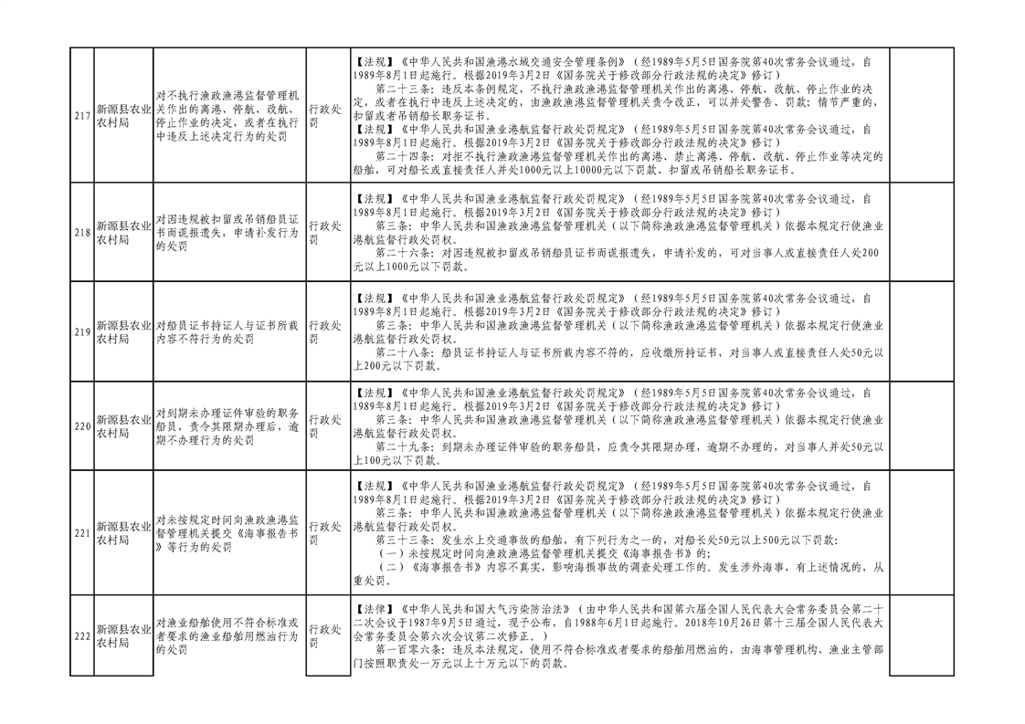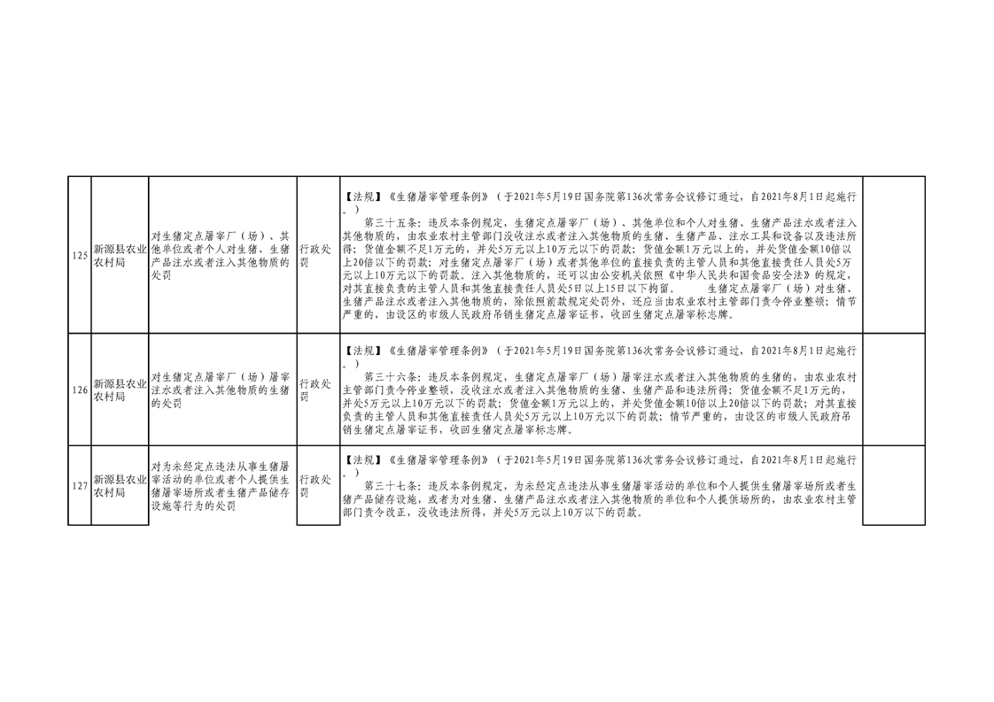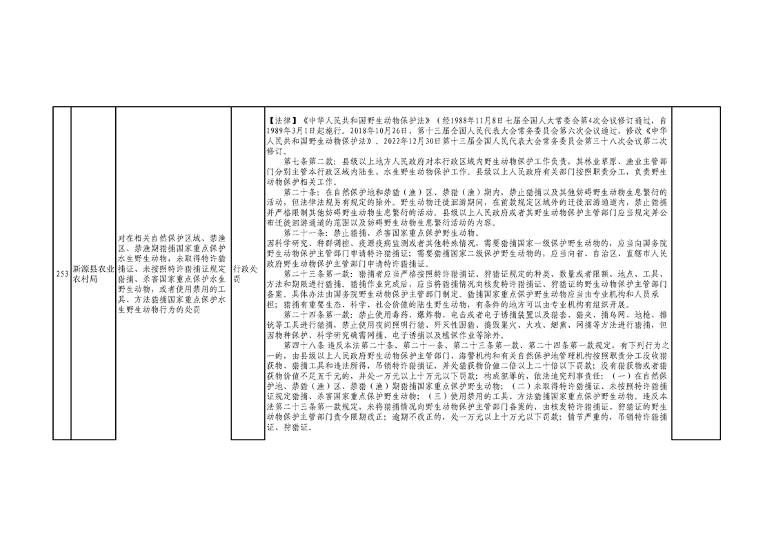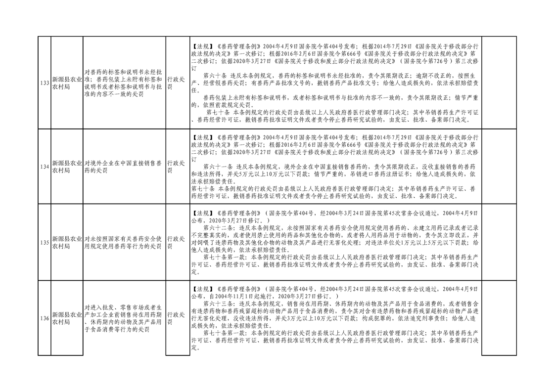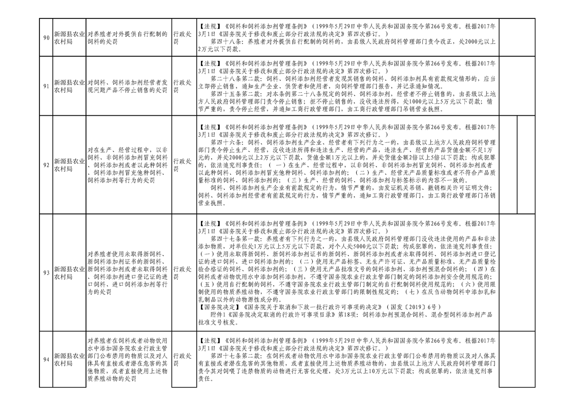 新源縣農業農村局行政執法事項清單