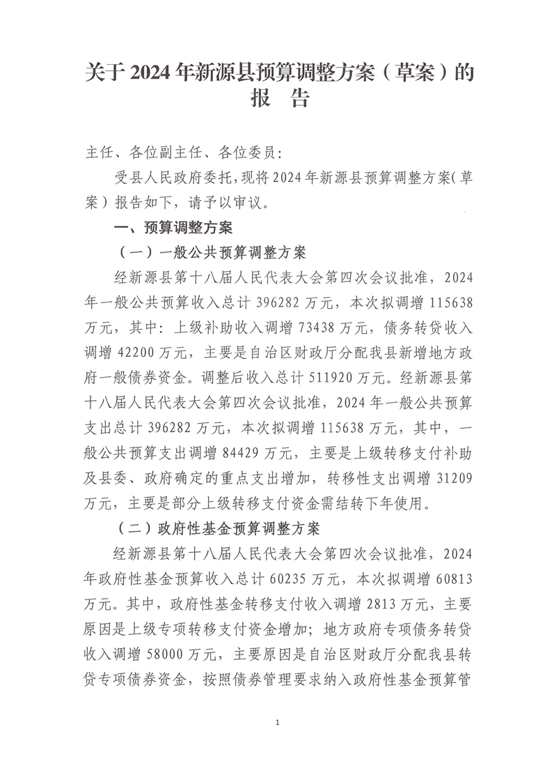 關(guān)于2024年新源縣預(yù)算調(diào)整方案(草案)的報(bào)告
