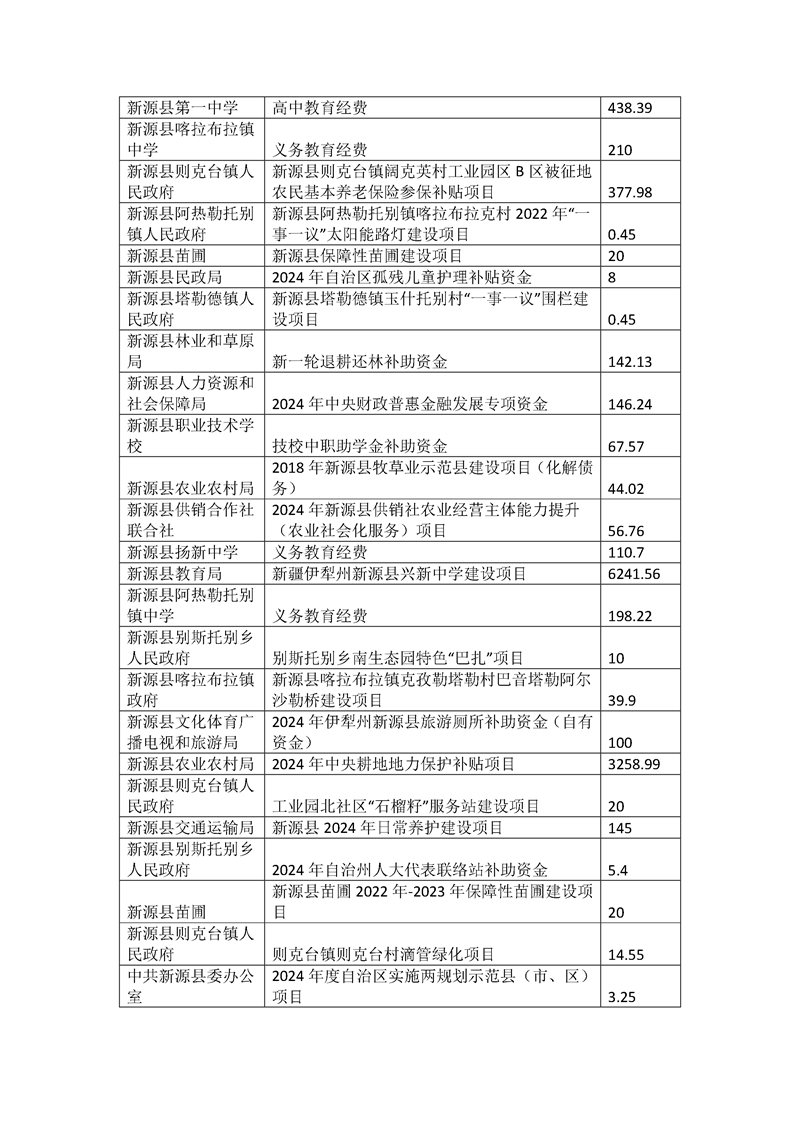新源縣2024年重點項目績效評價報告公開