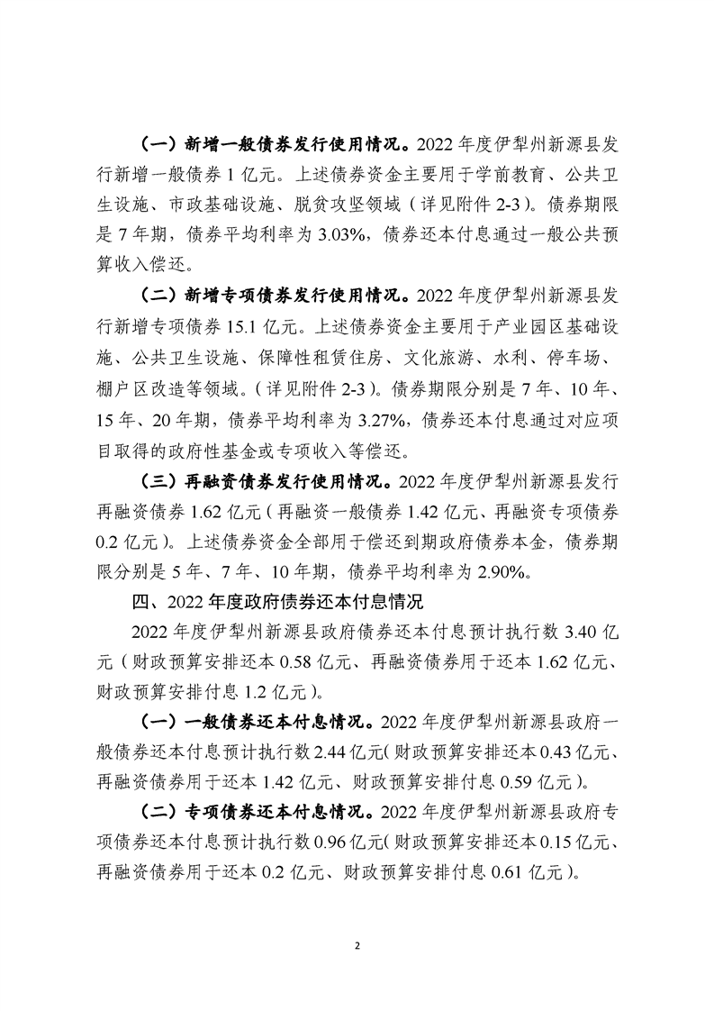 2022年度新源縣政府債務決算情況說明