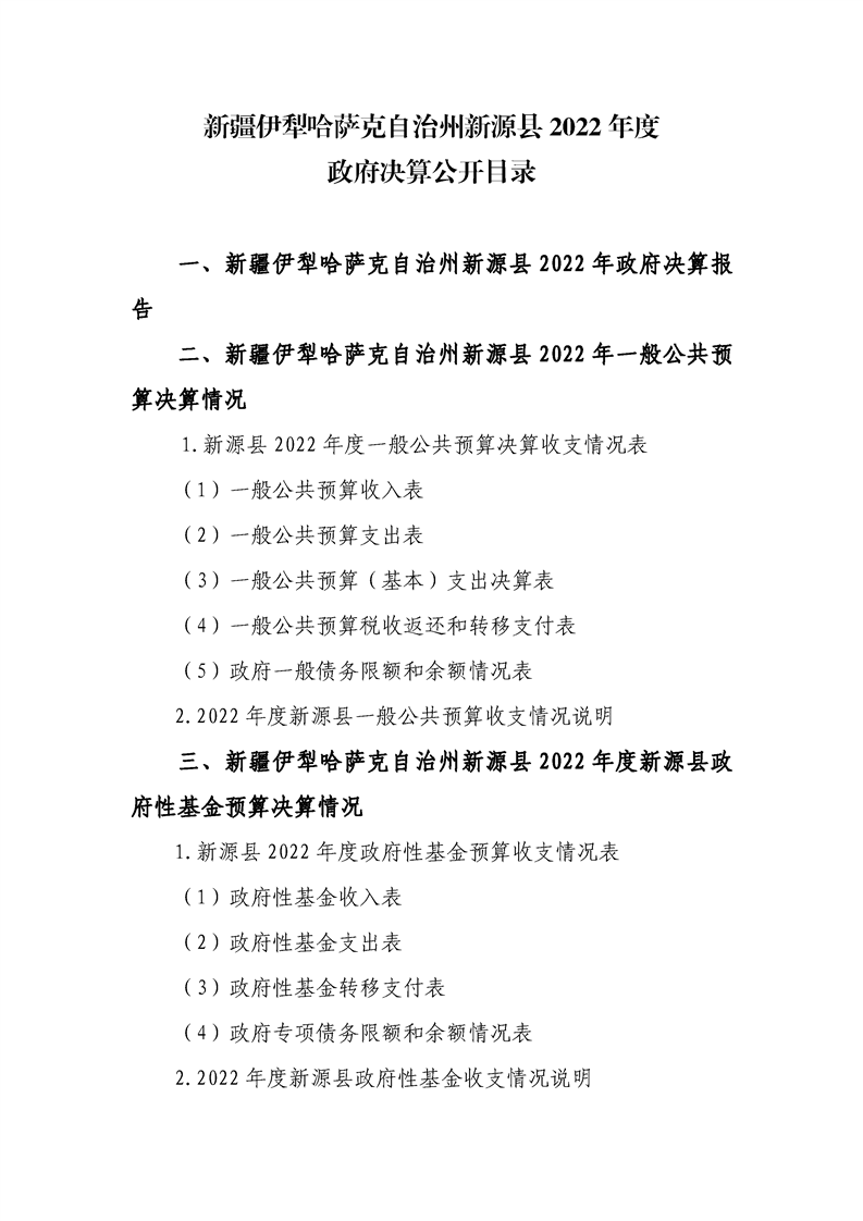 新疆伊犁哈薩克自治州新源縣2022年度政府決算公開
