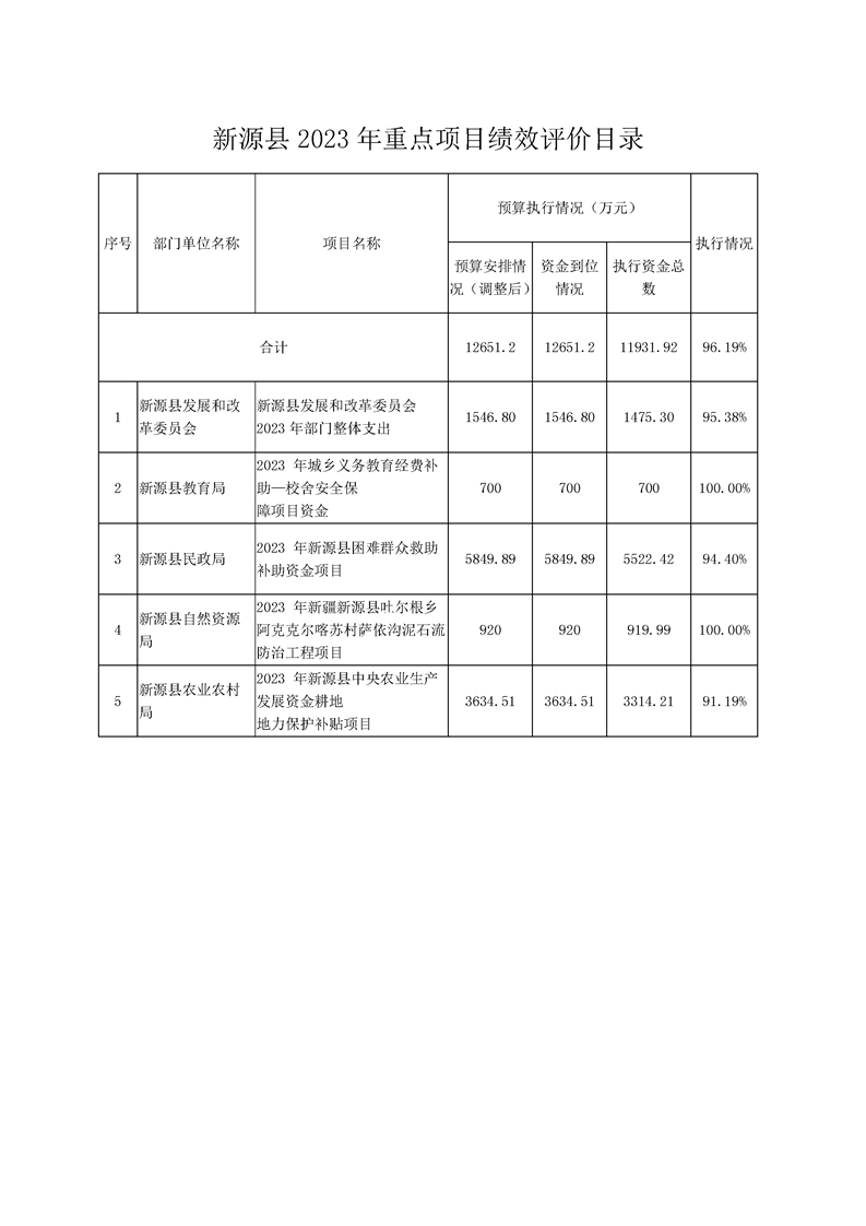 新源縣2023年重點項目績效評價公開