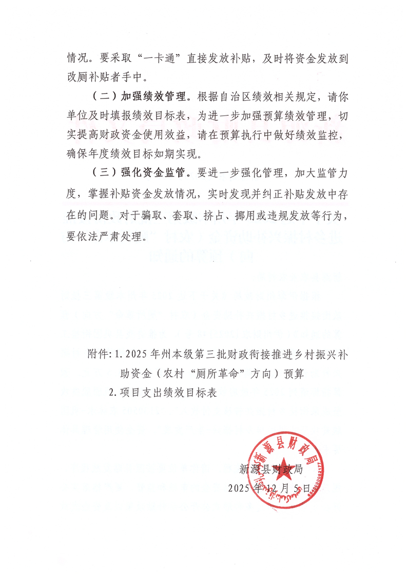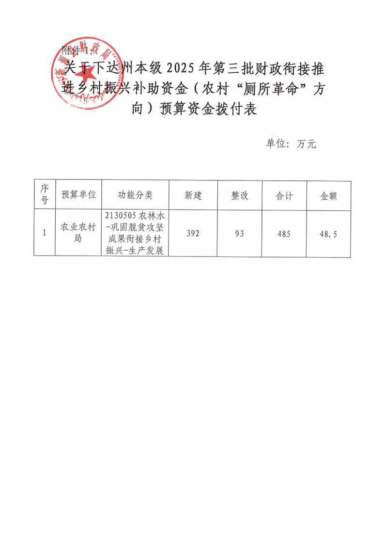 關于下達2025年州本級第三批財政銜接推進鄉村振興補助資金(農村“廁所革命”方向)預算的通知