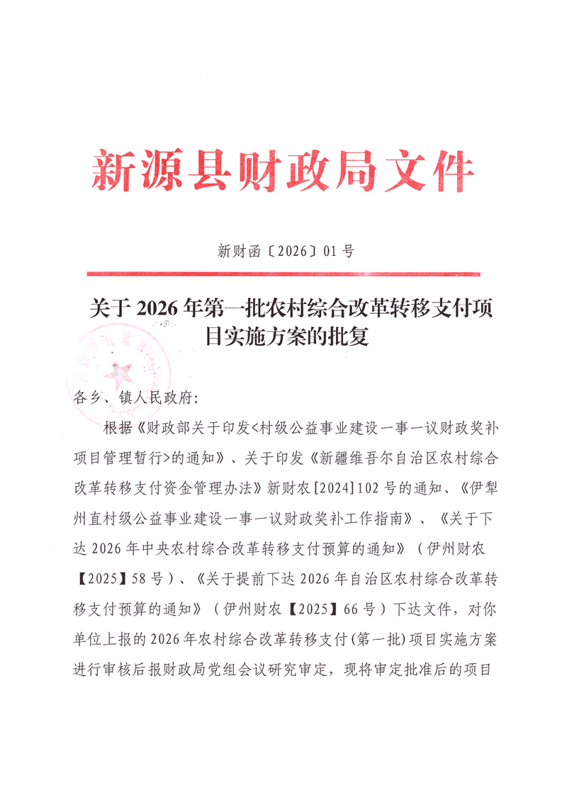 關(guān)于2026年第一批農(nóng)村綜合改革轉(zhuǎn)移支付項(xiàng)目實(shí)施方案的批復(fù)