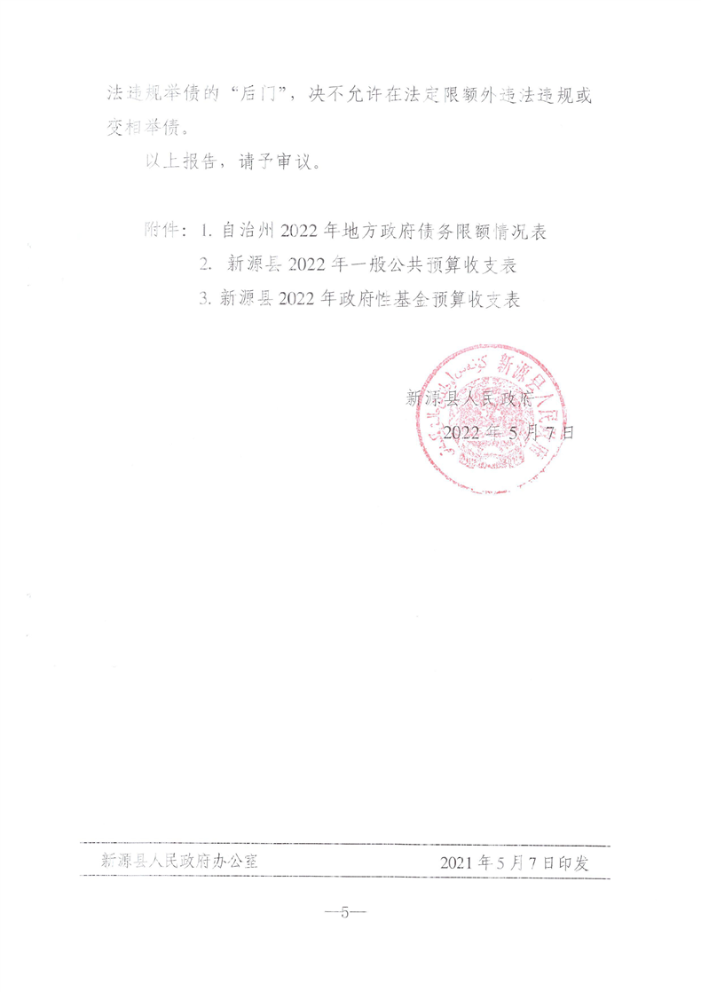關于批準新源縣2022年新增地方政府債務限額預算方案的報告的決議