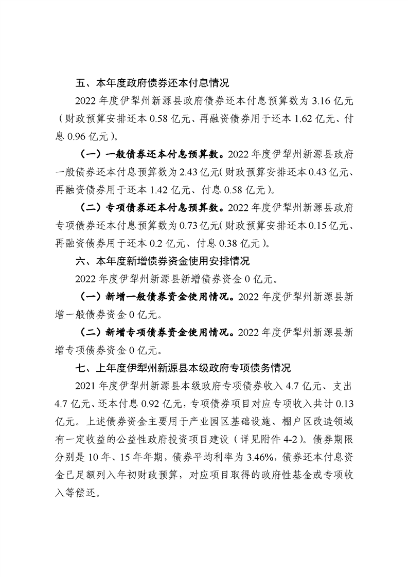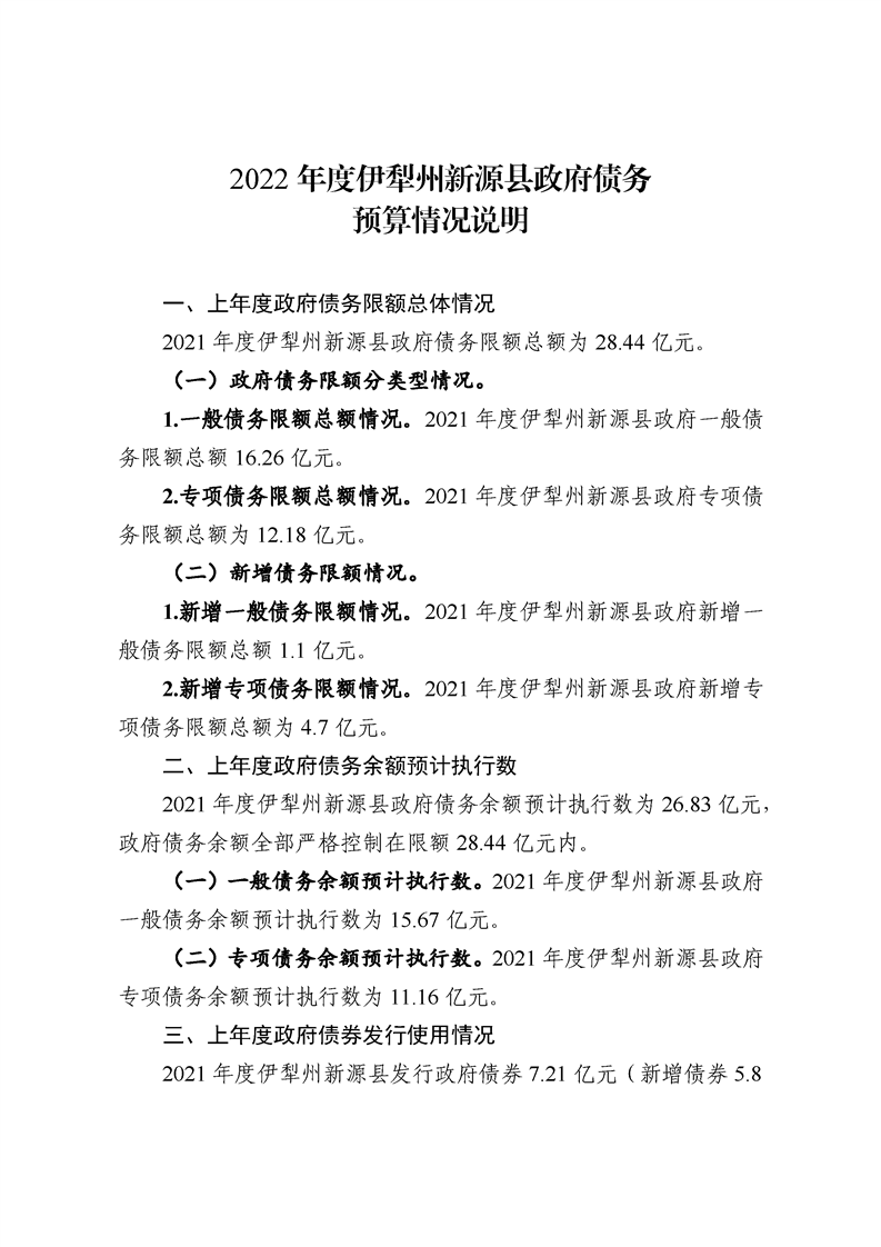 新源縣2022年債務(wù)預(yù)算公開及附表