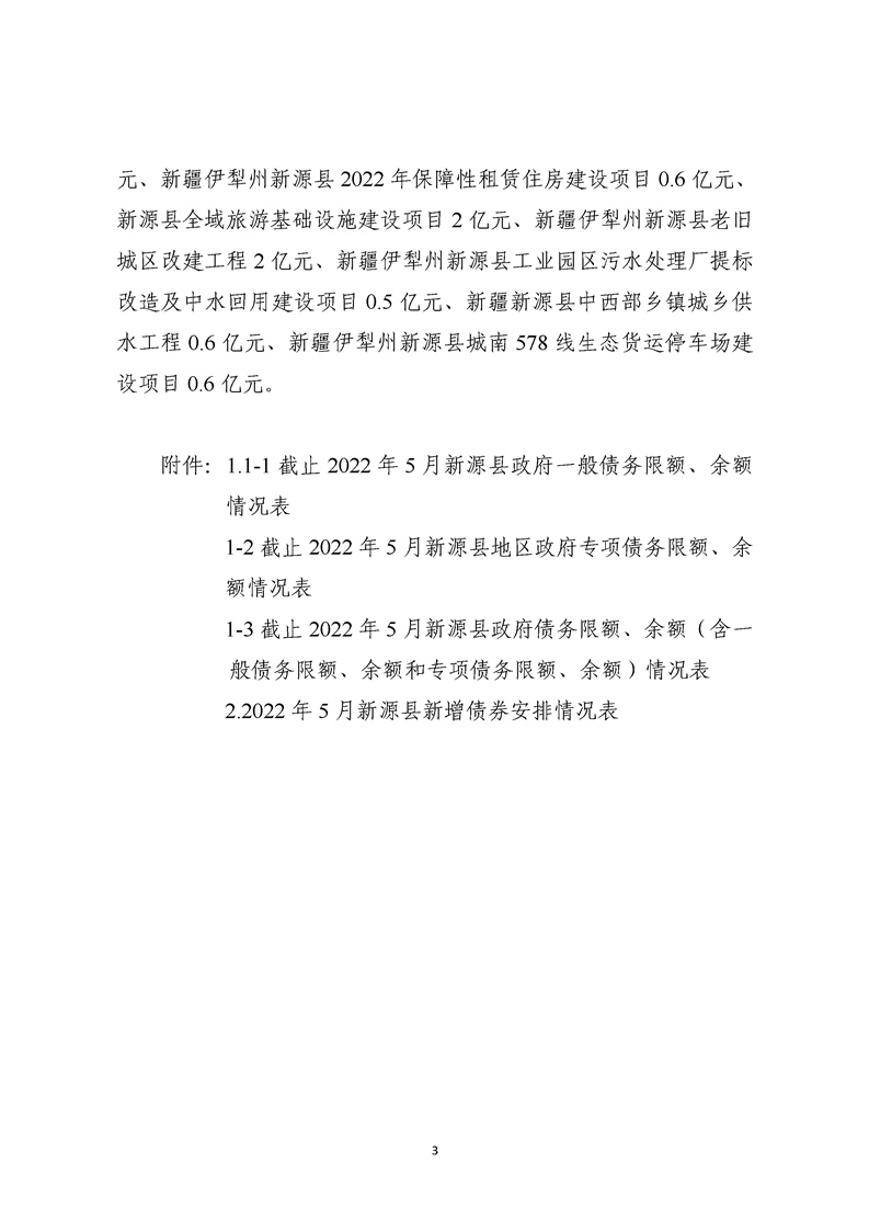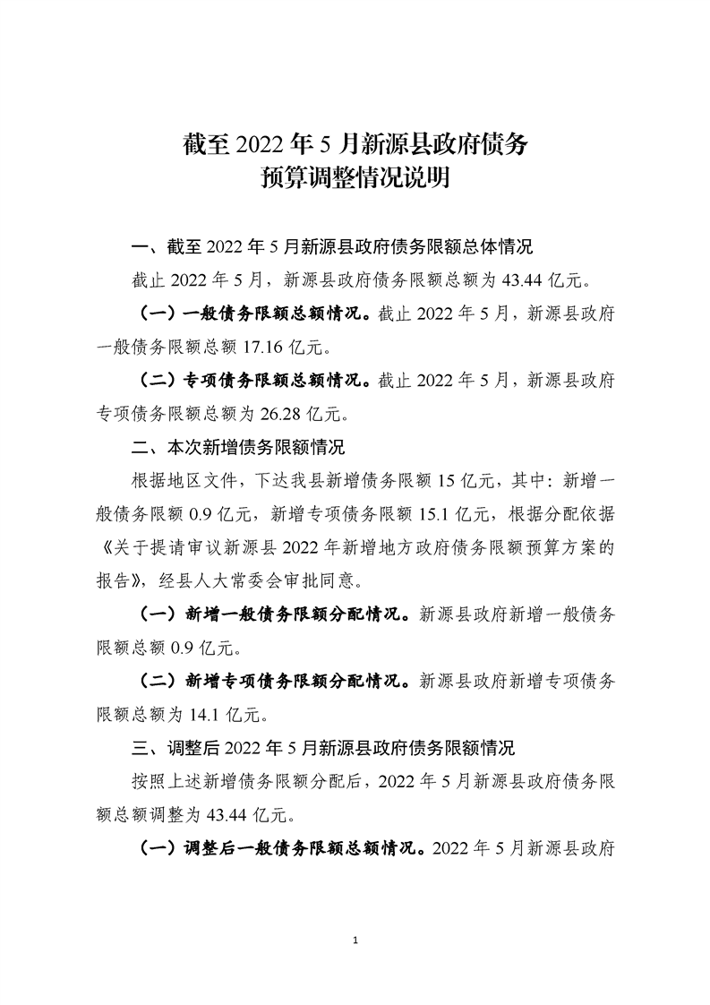 截至2022年5月新源縣政府債務預算調整情況說明及附表