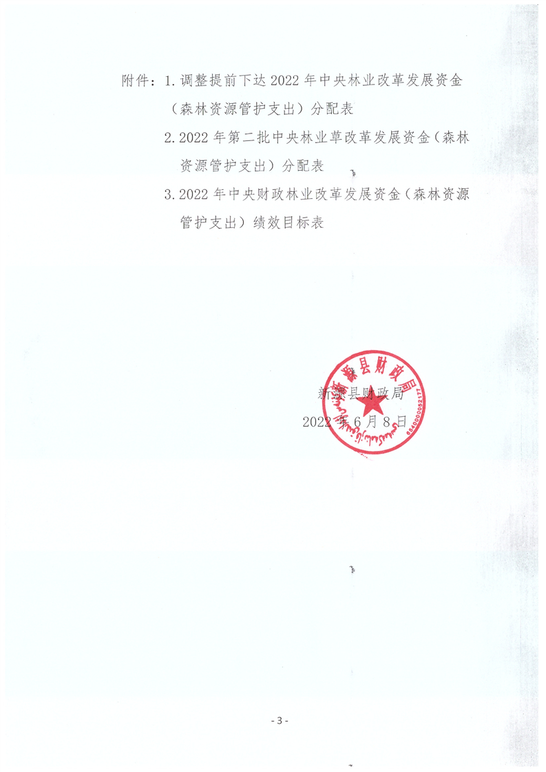 新源財建〔2022〕040號 關于調整2022年提前下達、撥付2022第二批中央林業改革發展資金(森林資源管護支出)通知