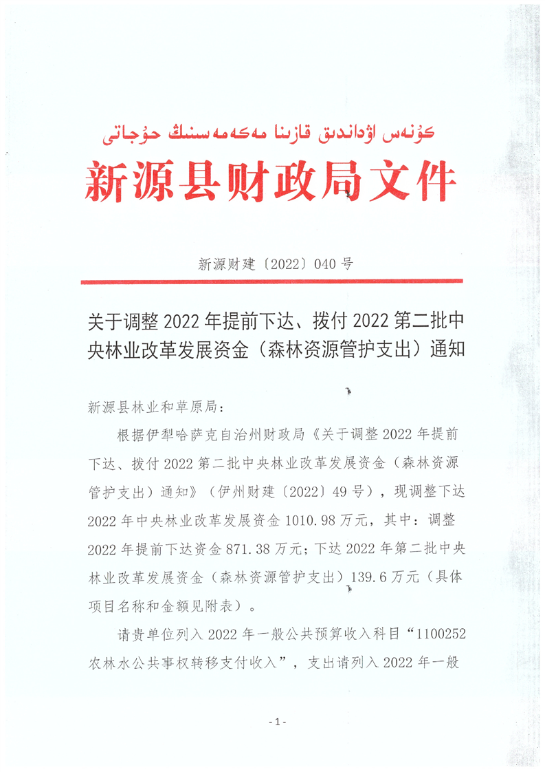 關于調整2022年提前下達、撥付2022第二批林業(yè)改革發(fā)展資金的通知