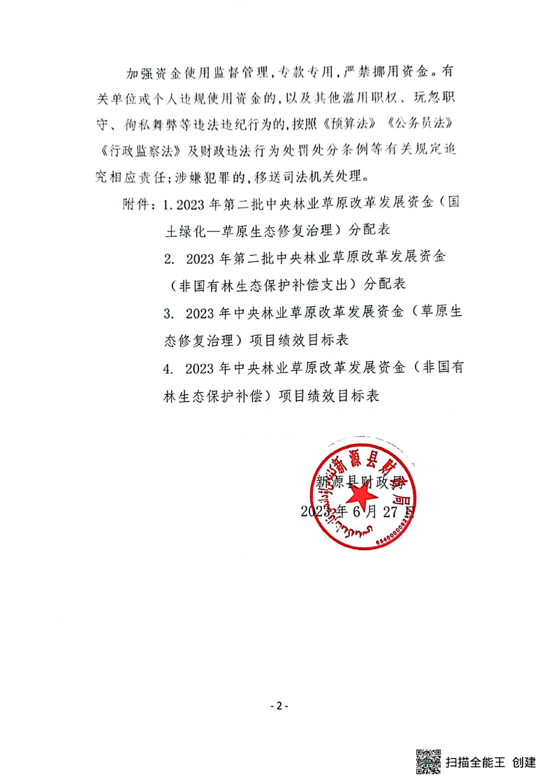 新源財建【2023】20號關于下達2023年第二批中央林業草原改革發展資金的通知