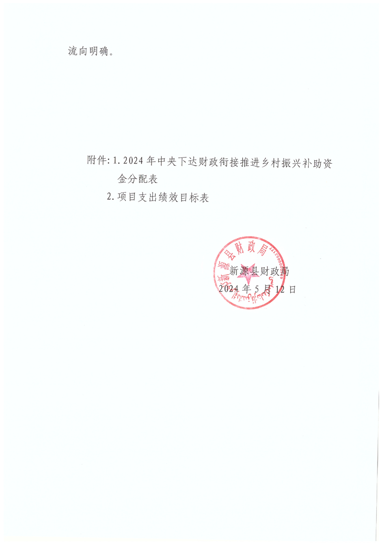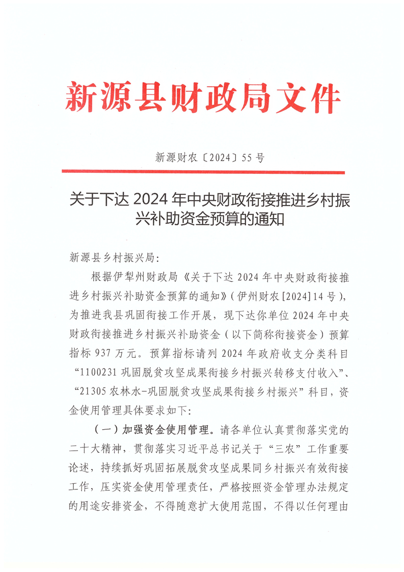 新源財農[2024]55號關于下達2024年中央財政銜接推進鄉村振興補助資金預算的通知