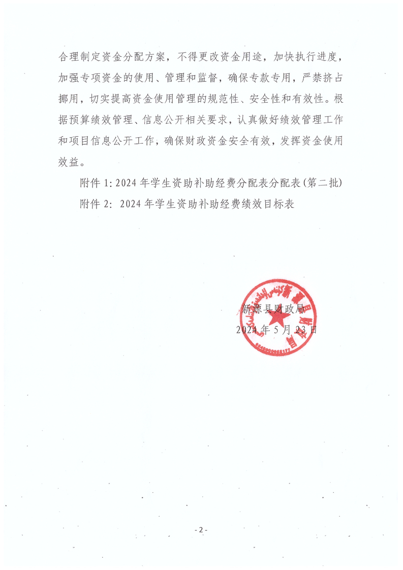 關于下達2024年學生資助補助經費預算(第二批)中央直達資金通知