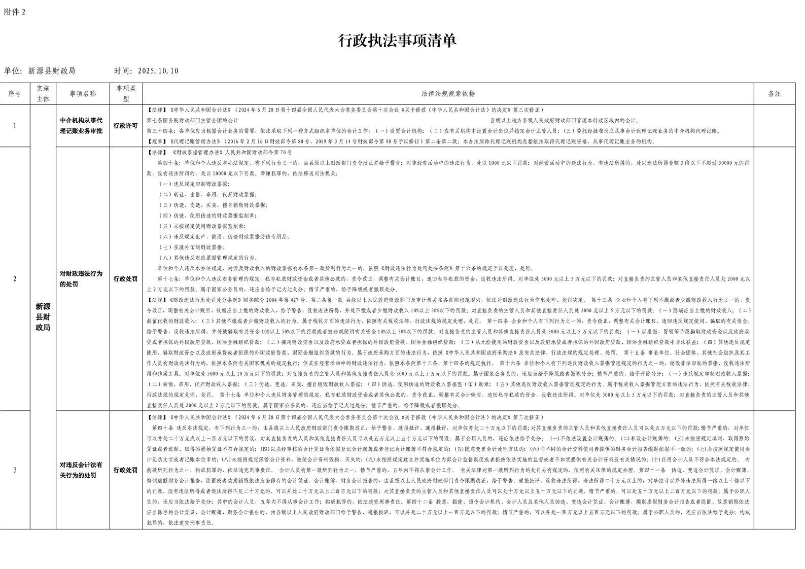 新源縣財(cái)政局行政執(zhí)法事項(xiàng)清單