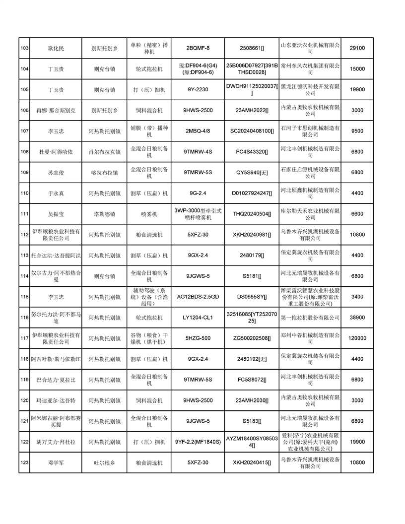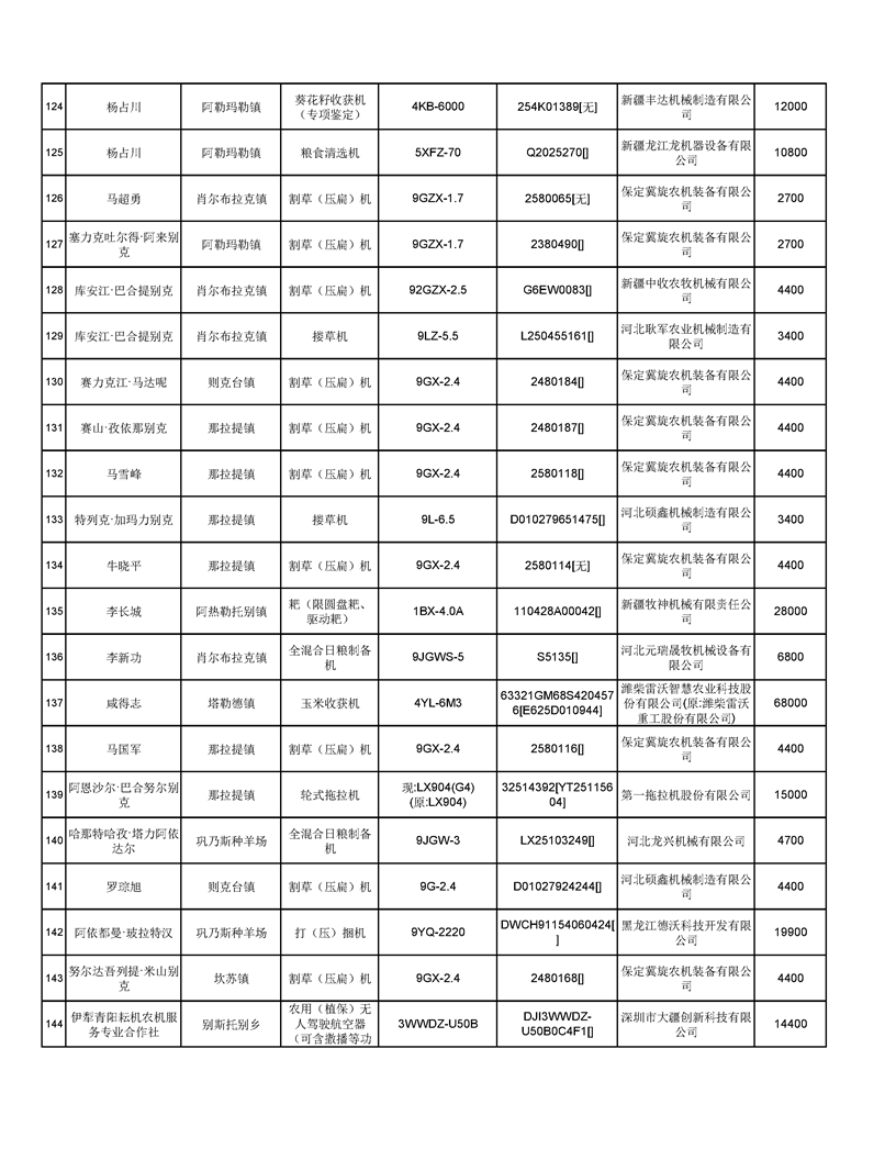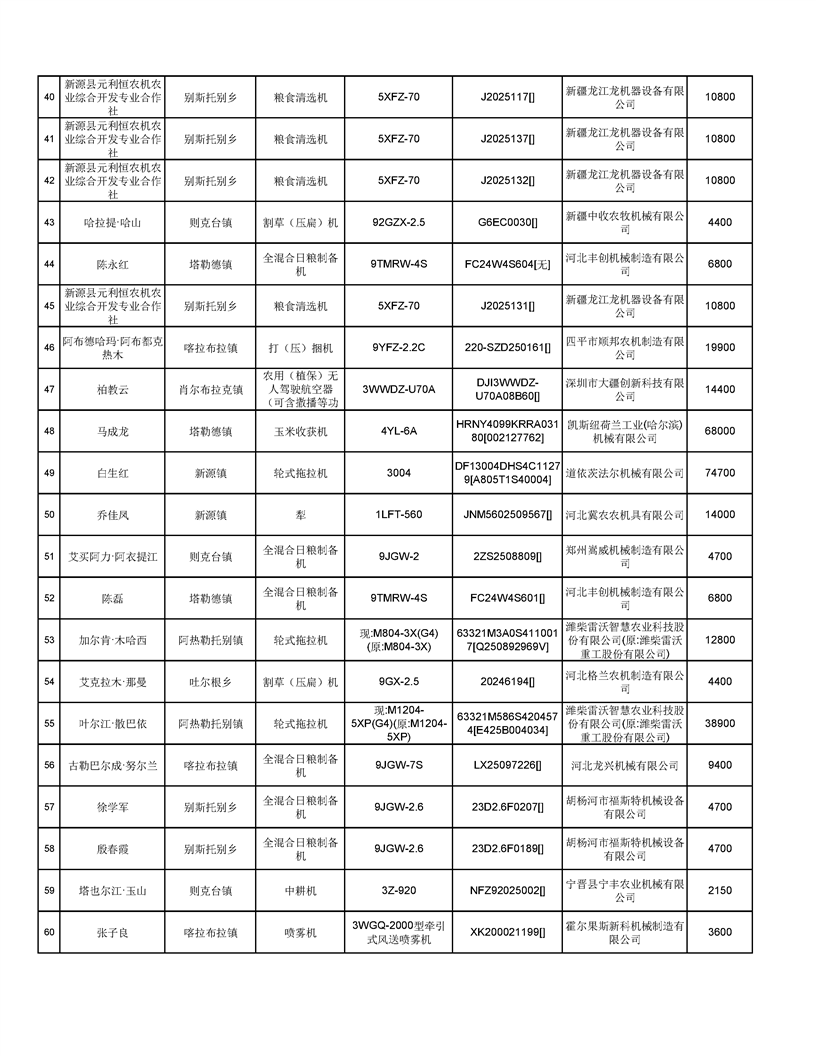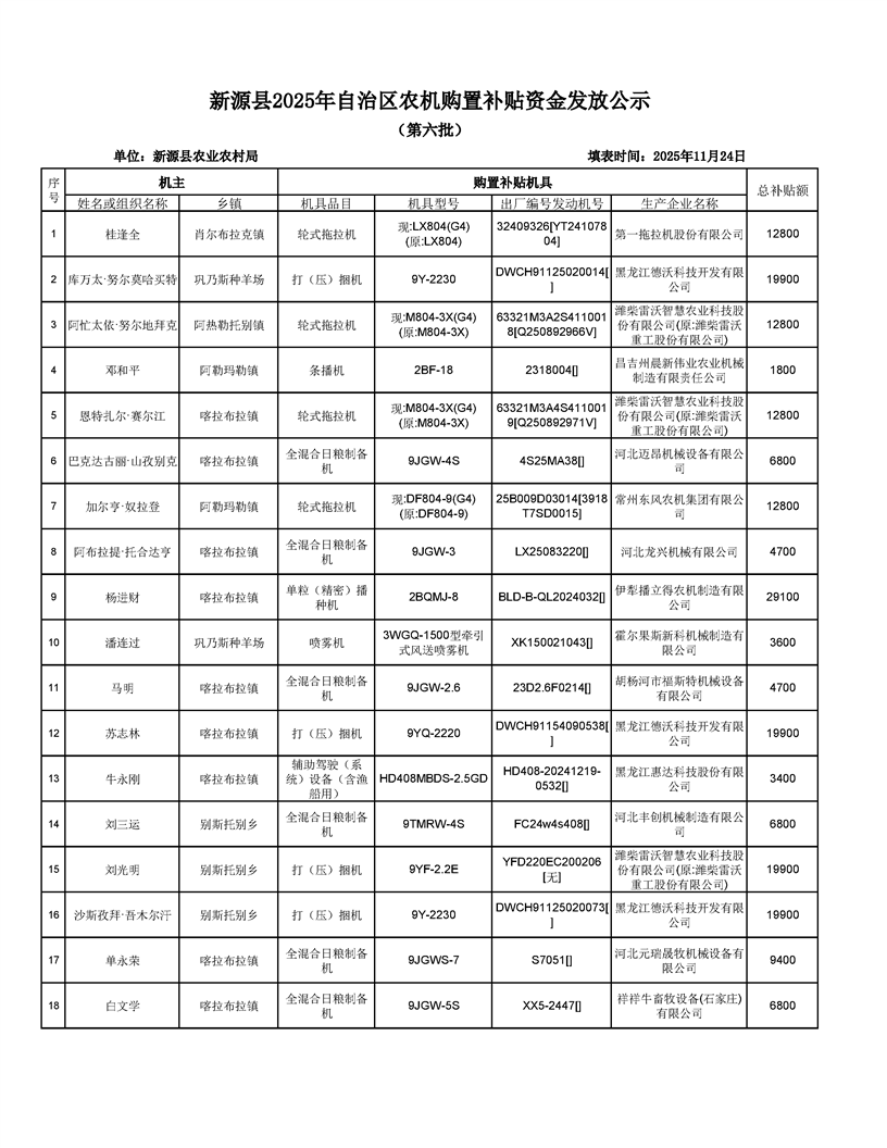 新源縣2025年自治區農機購置補貼資金發放公示(第六批)