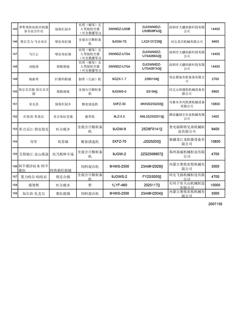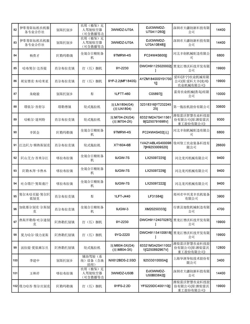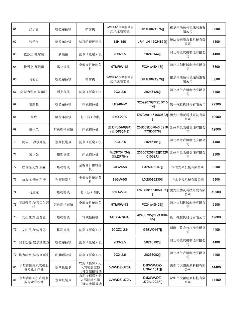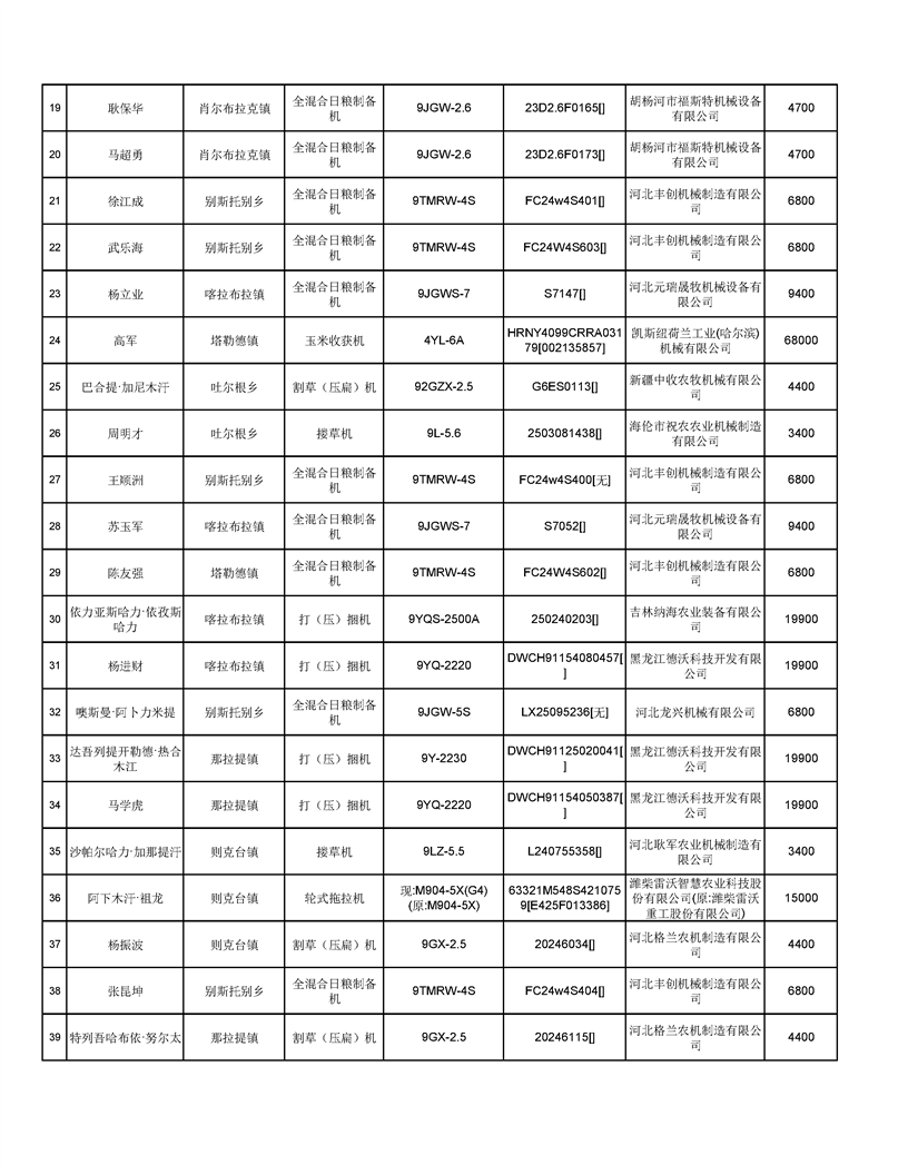 新源縣2025年自治區農機購置補貼資金發放公示(第六批)