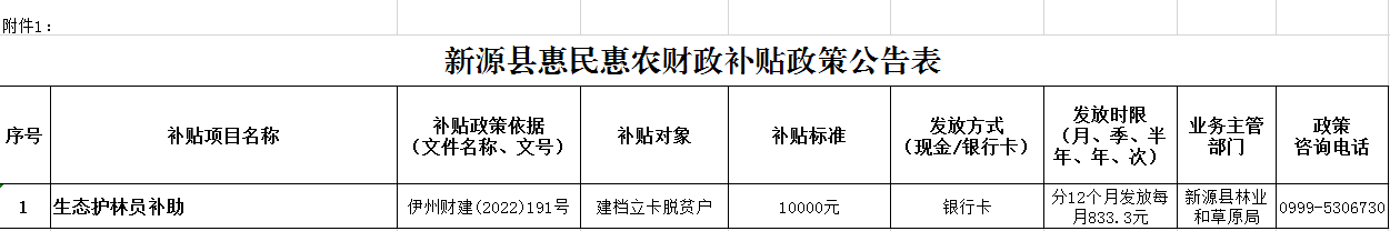 附件:新源縣惠民惠農財政補貼政策公告表