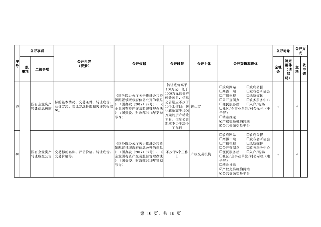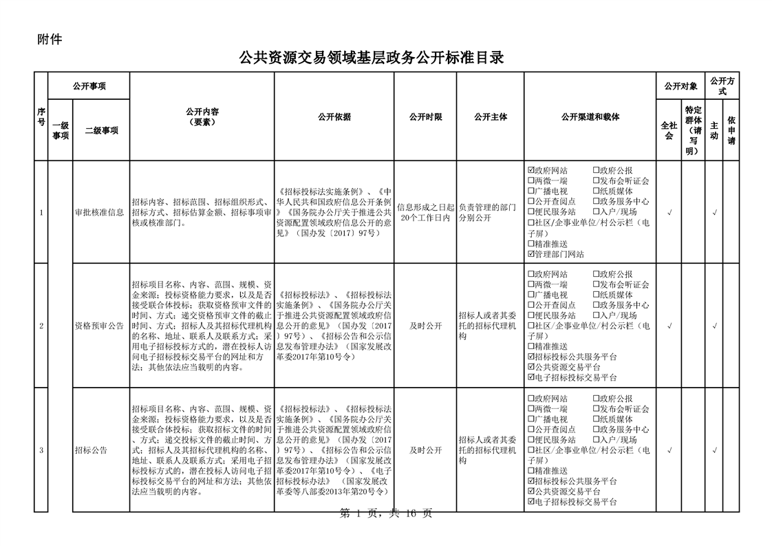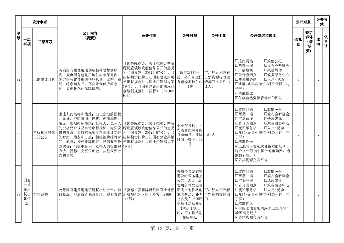 • 公開目錄: 試點領域基層政務公開標準目錄