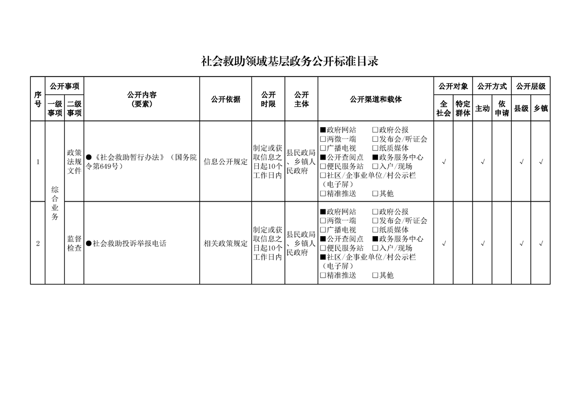 • 公開目錄: 試點領域基層政務公開標準目錄