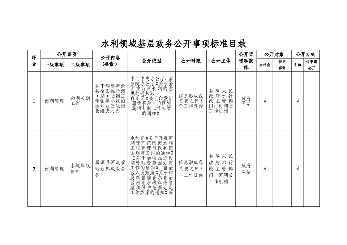 • 公開目錄: 試點領域基層政務公開標準目錄