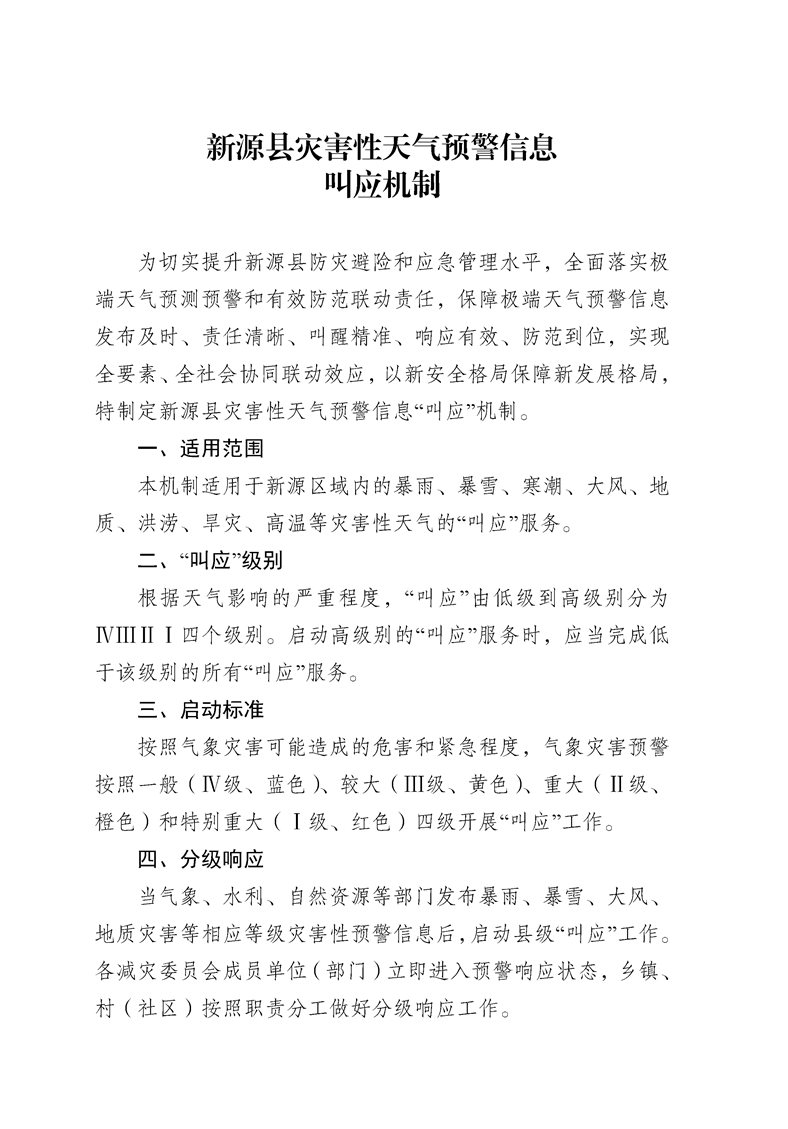 新源縣災害性天氣預警信息叫應機制