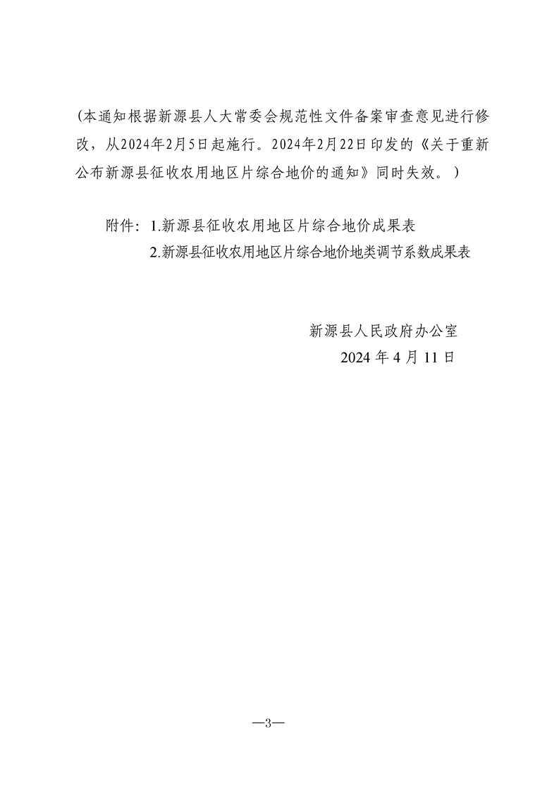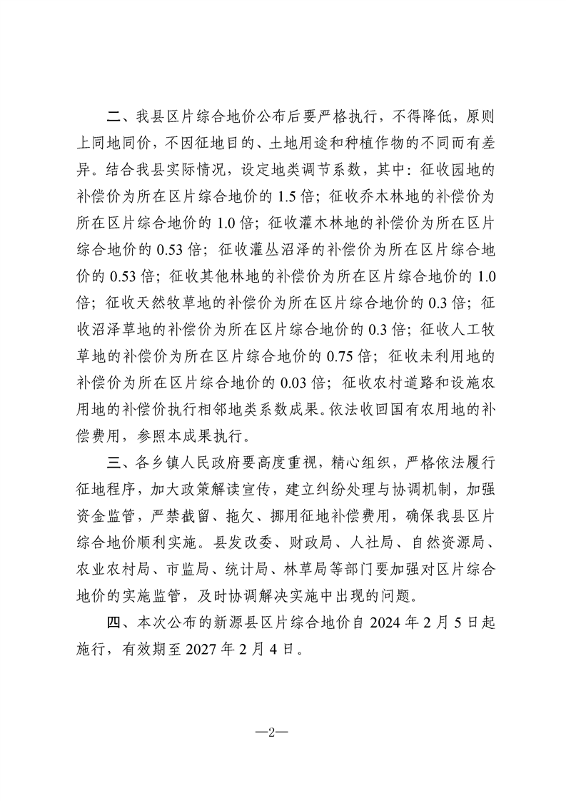 關于重新公布新源縣征收農用地區片綜合地價的通知