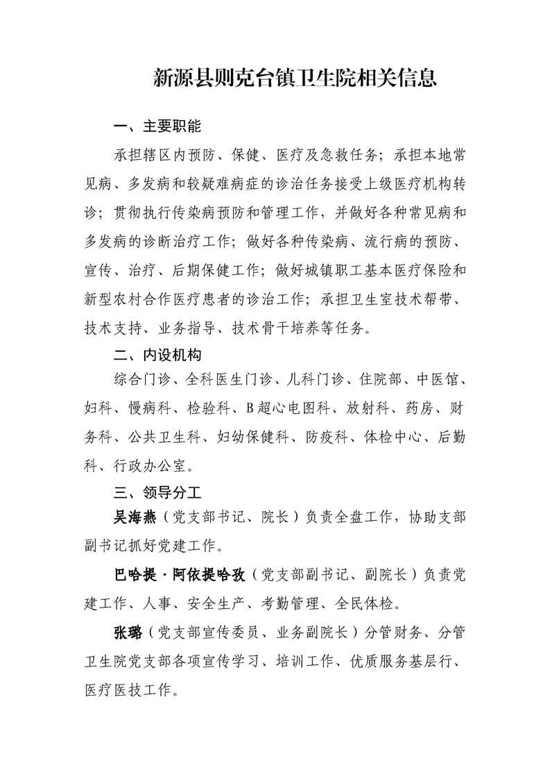 新源縣則克臺鎮(zhèn)衛(wèi)生院相關信息