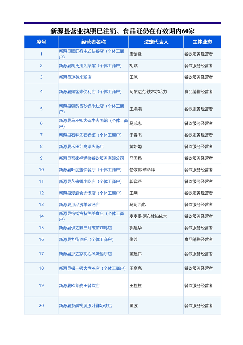 新源縣營業執照已注銷食品證仍在有效期內60家